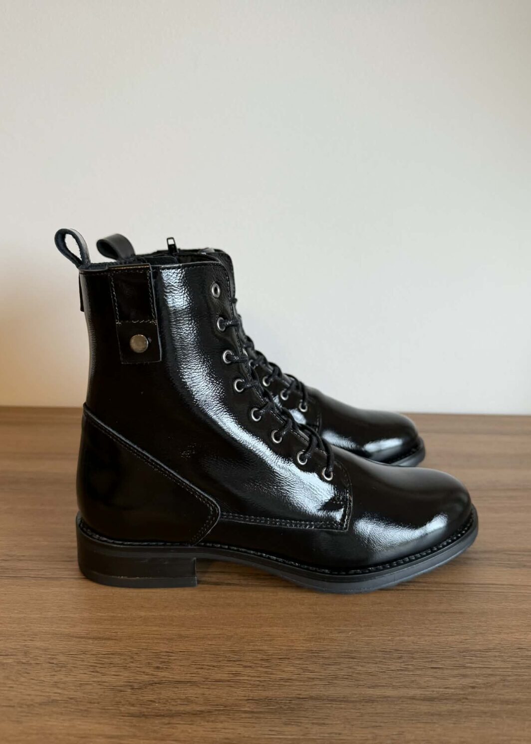 Botim estilo militar em pele envernizada – preto