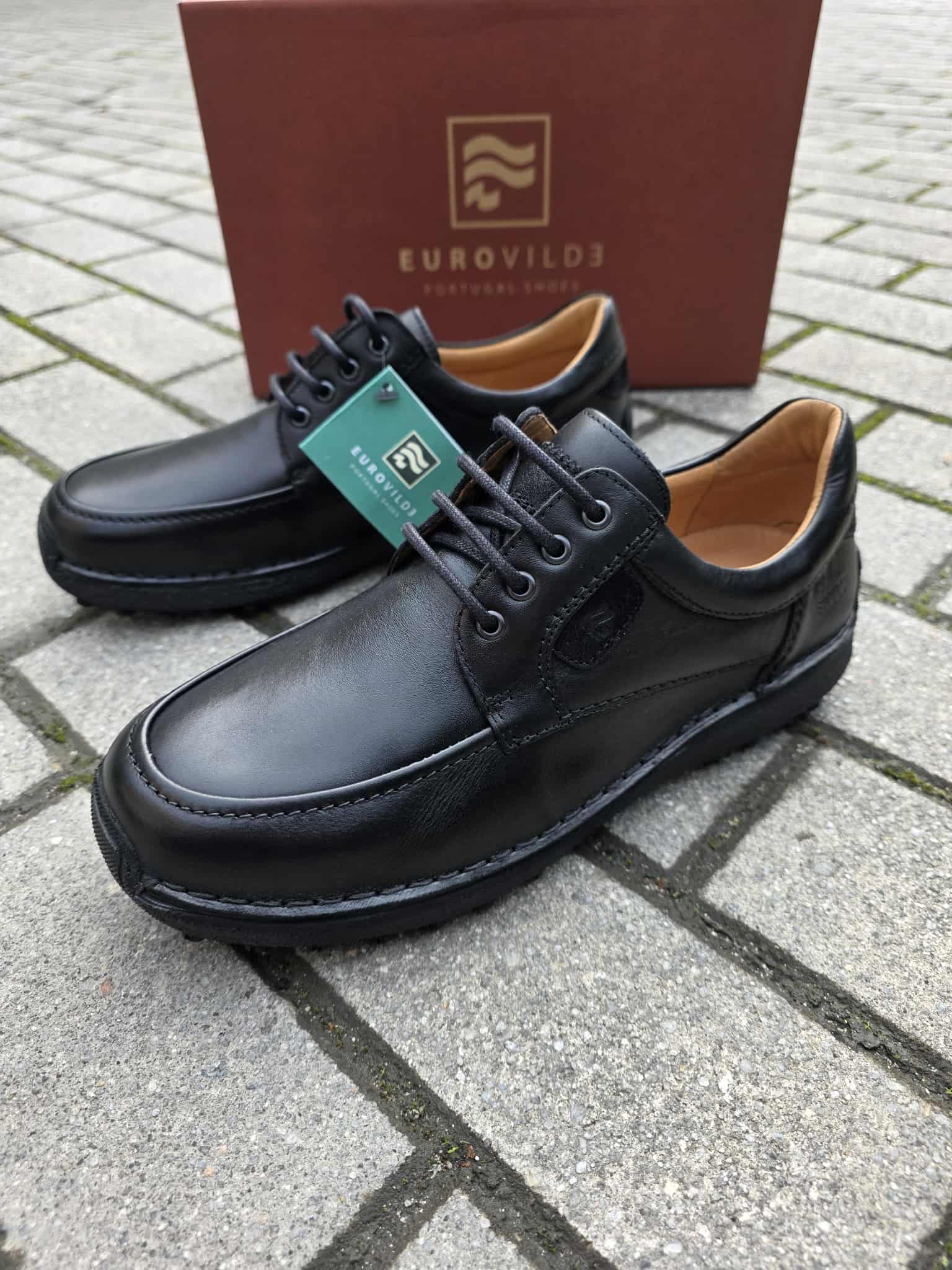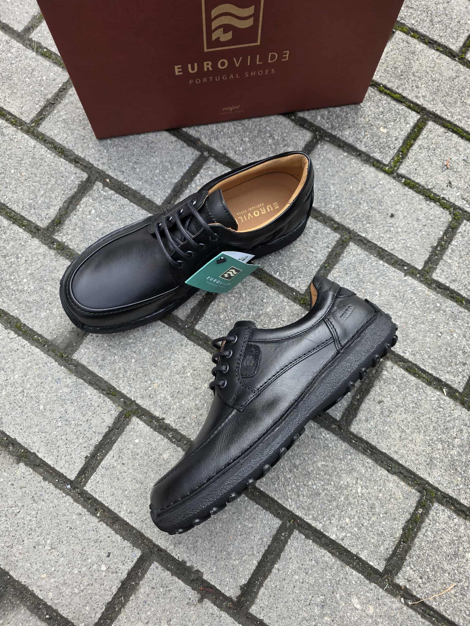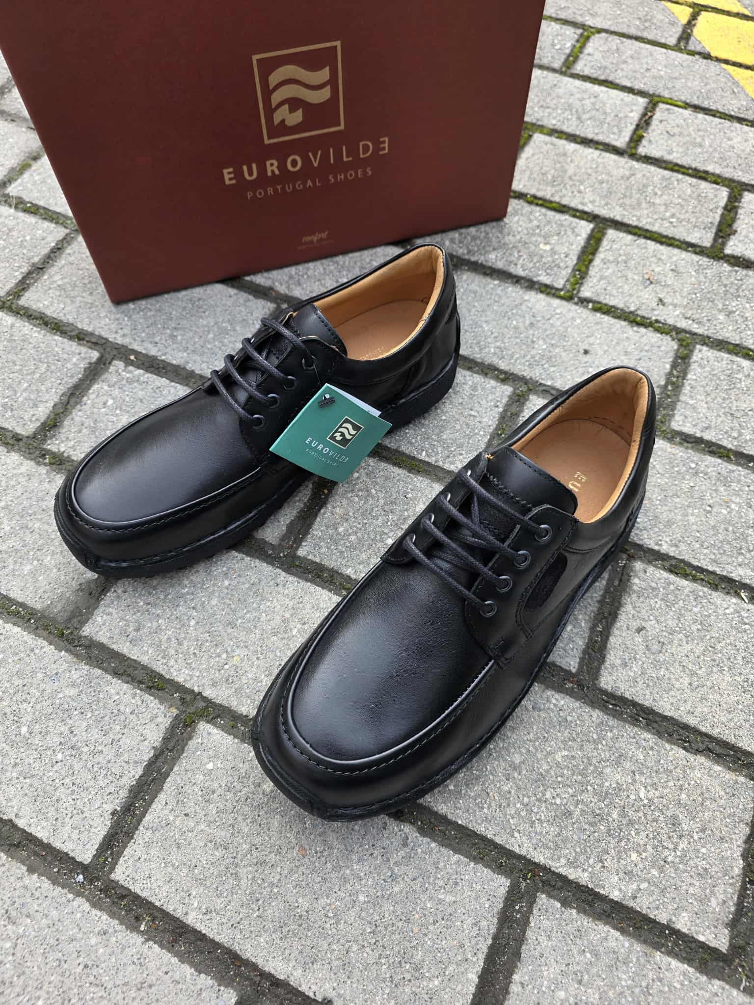 Sapato Eurovilde Preto em pele, fabricado em Portugal.