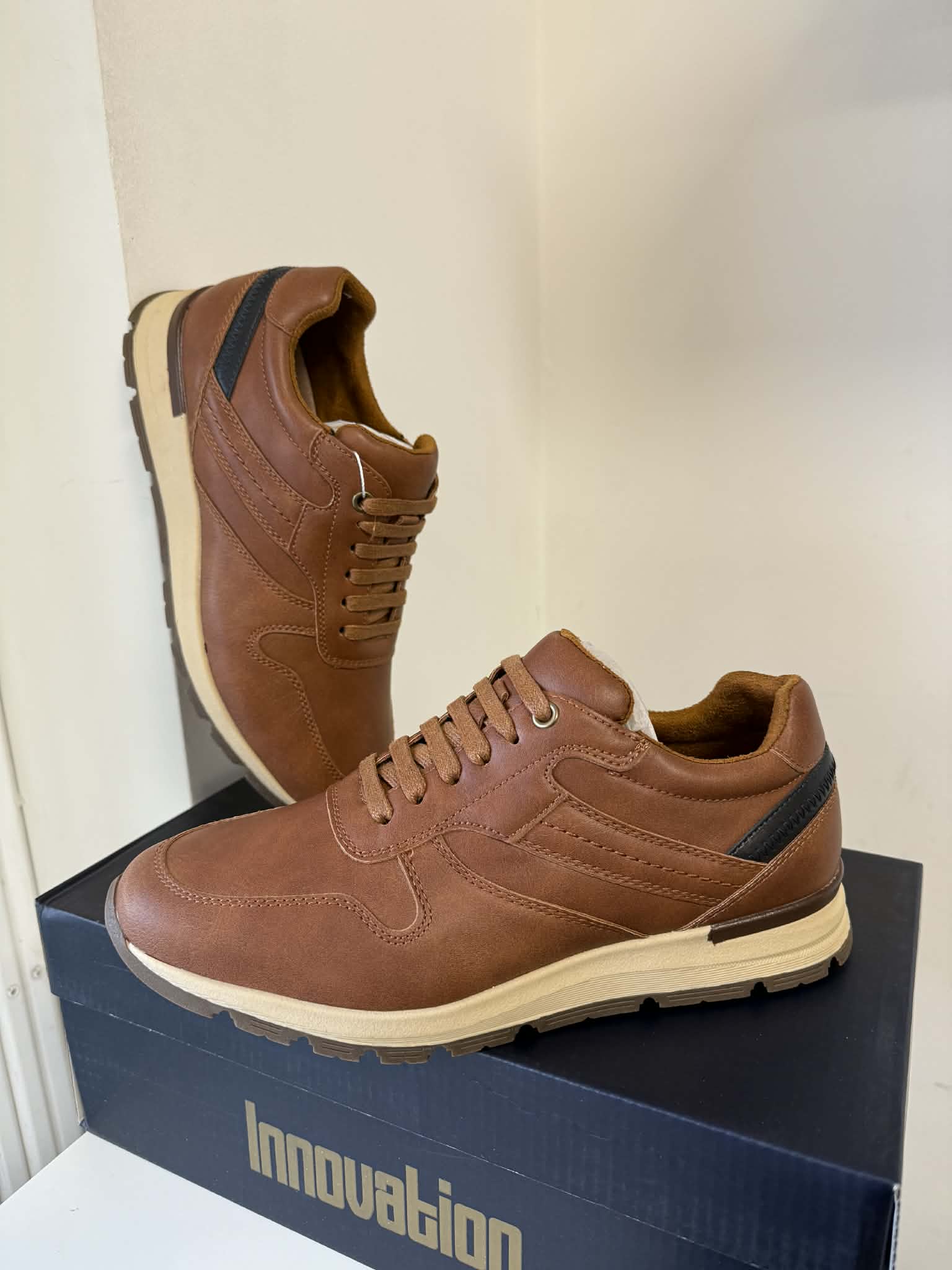 Sapato em pele sintética, com palmilha almofadada. Da marca Innovation.