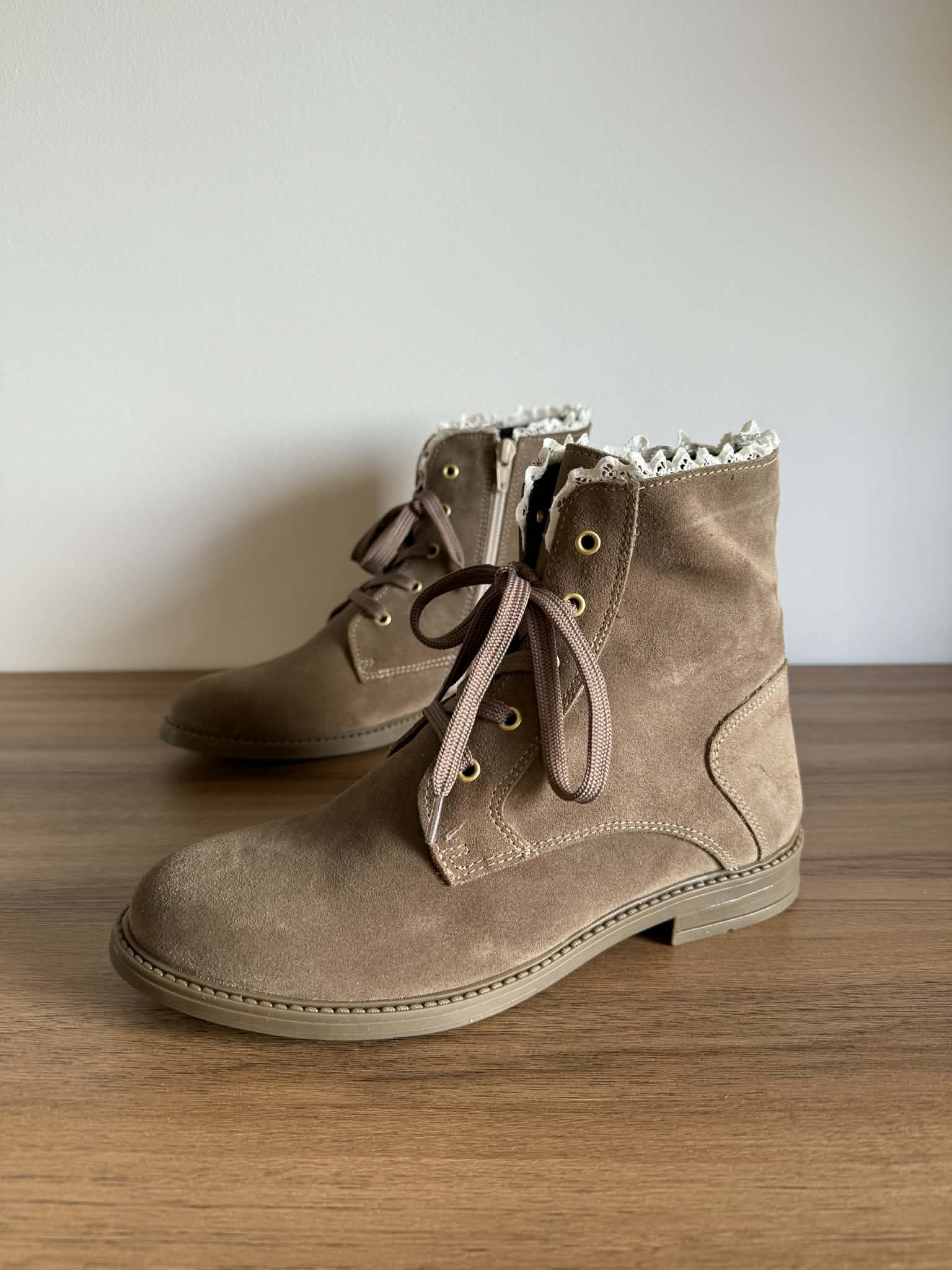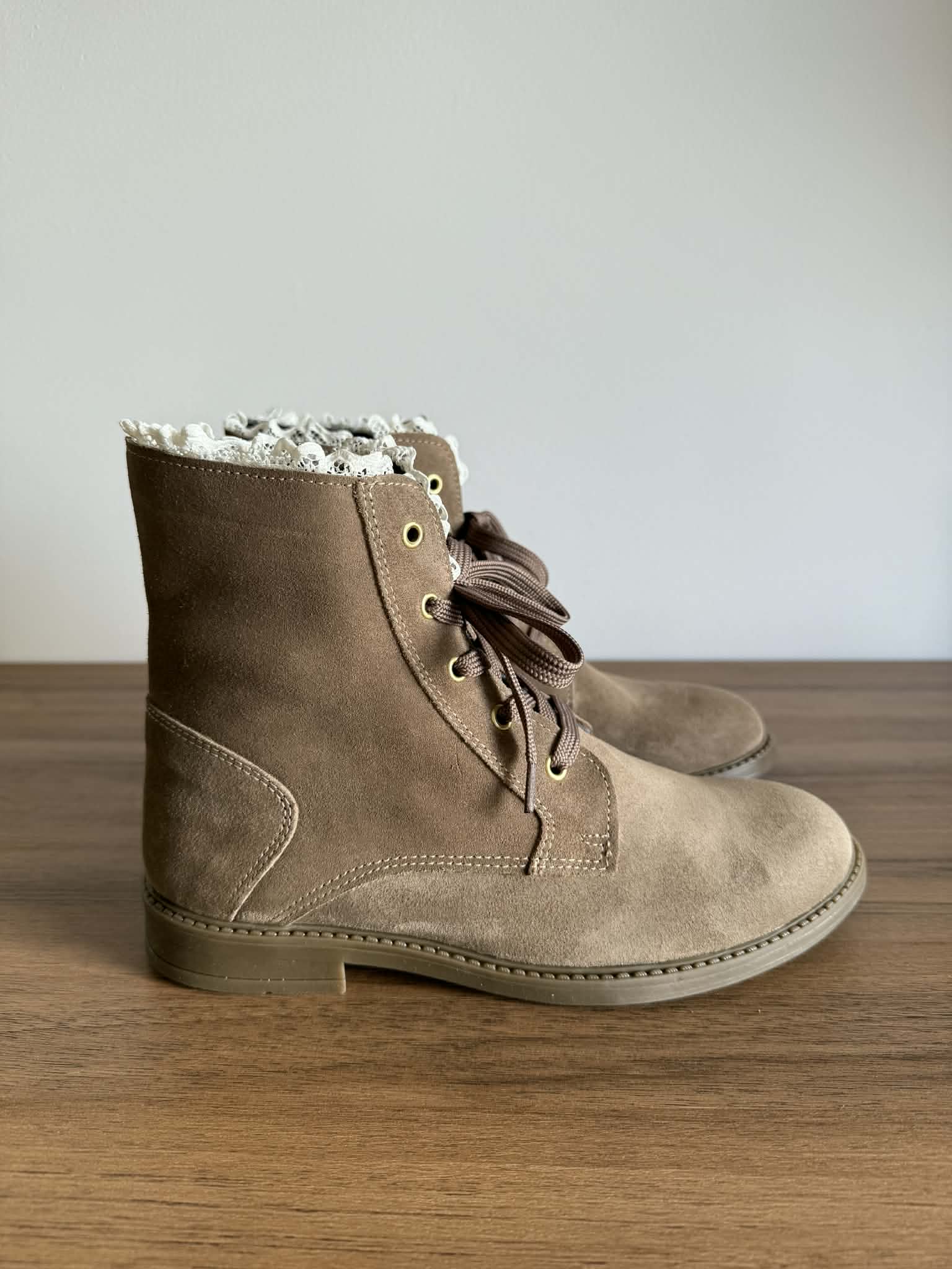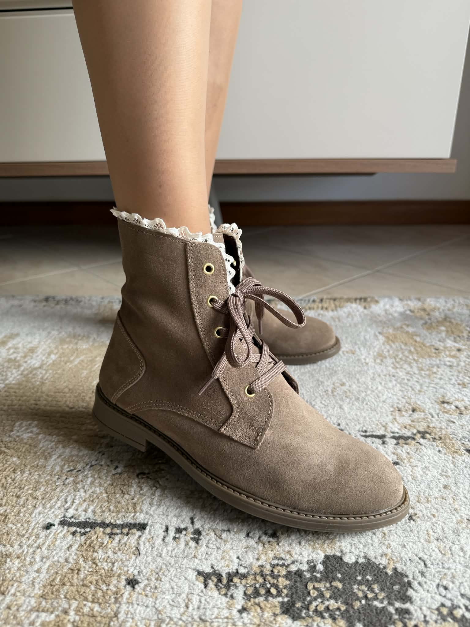 Bota Camurça Com Rendinha