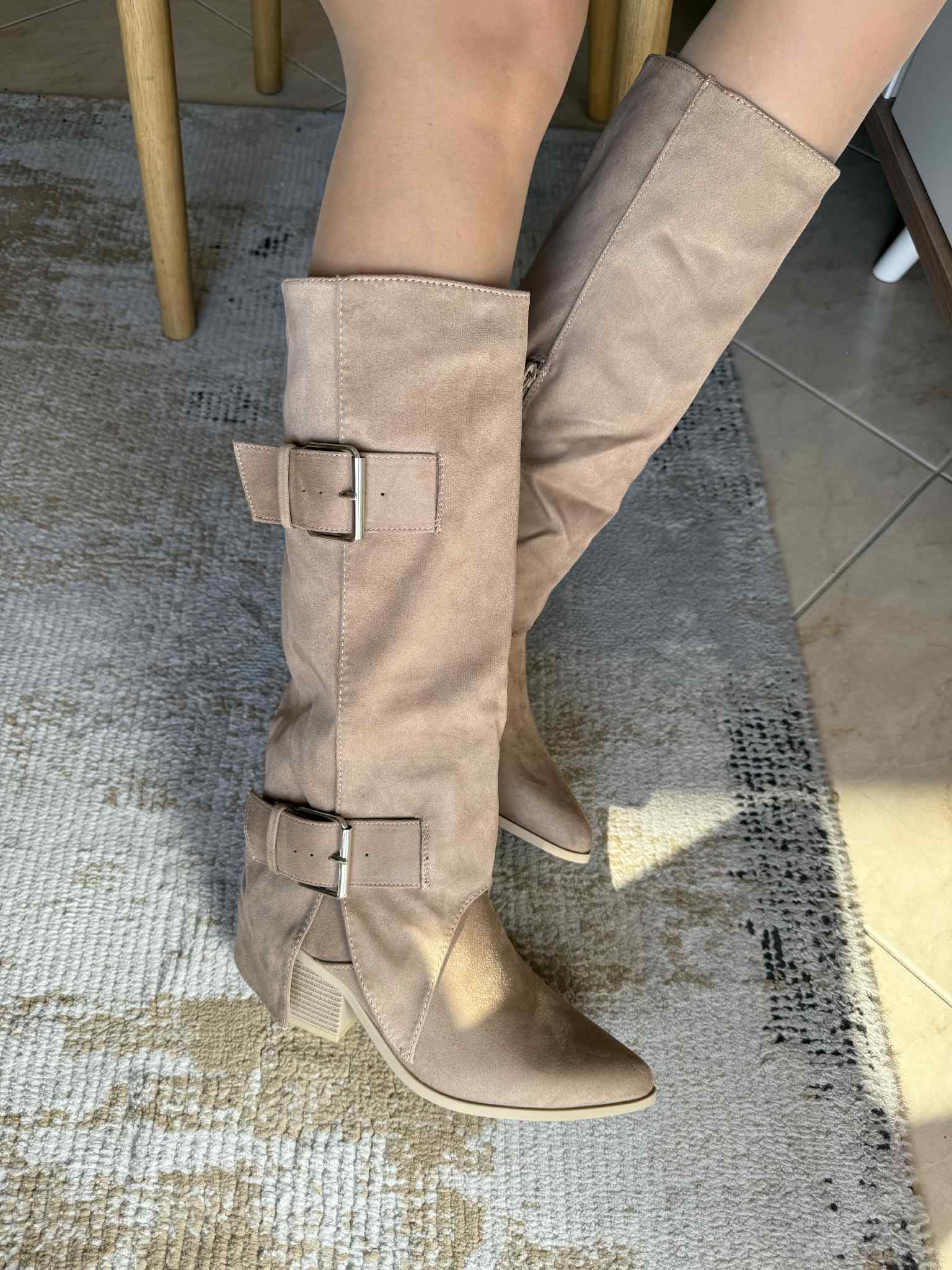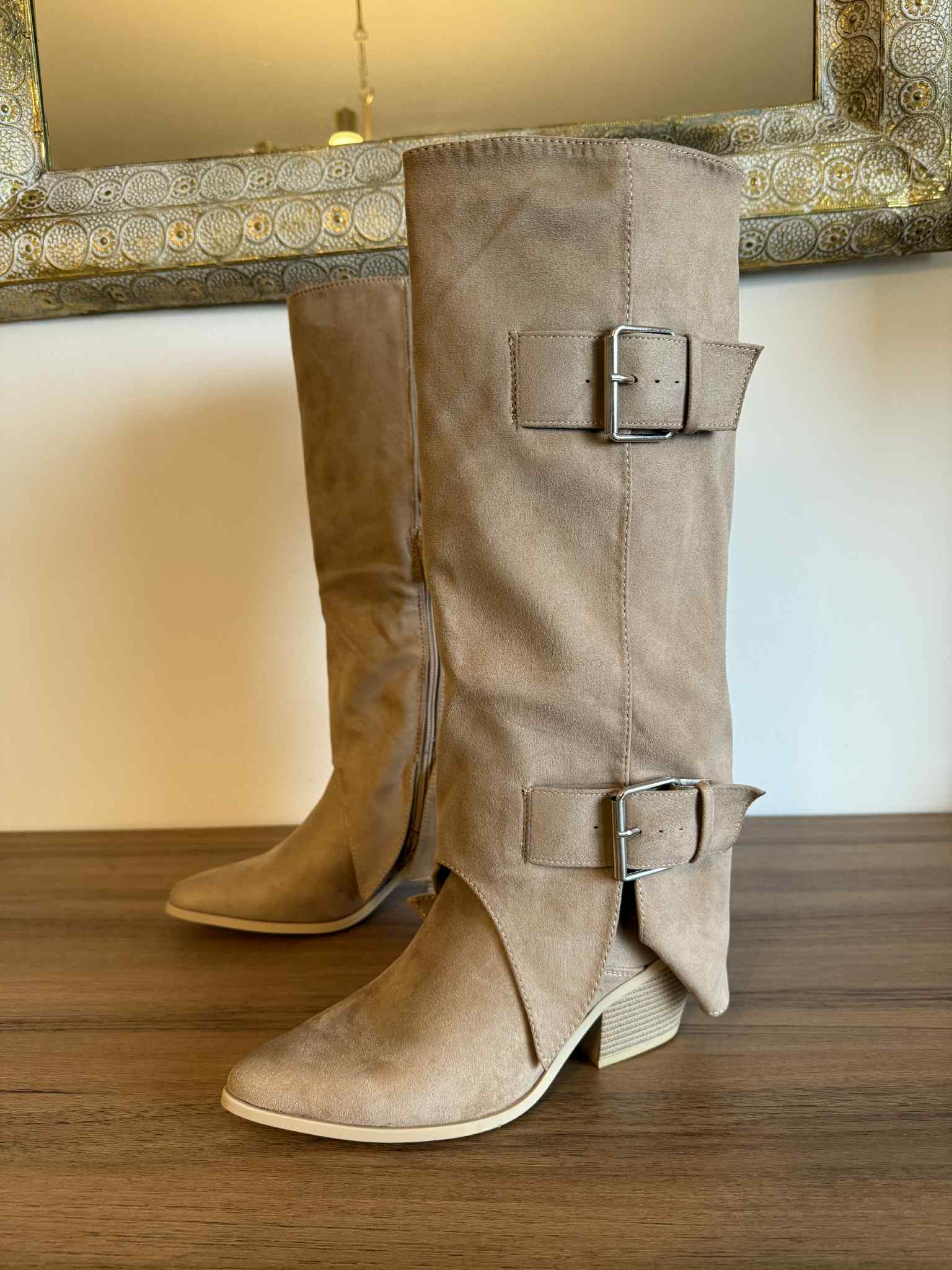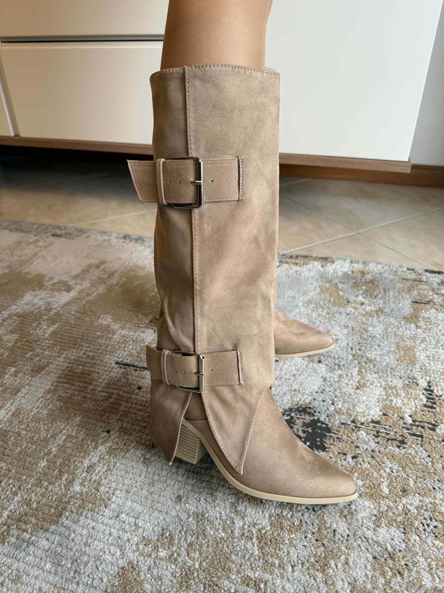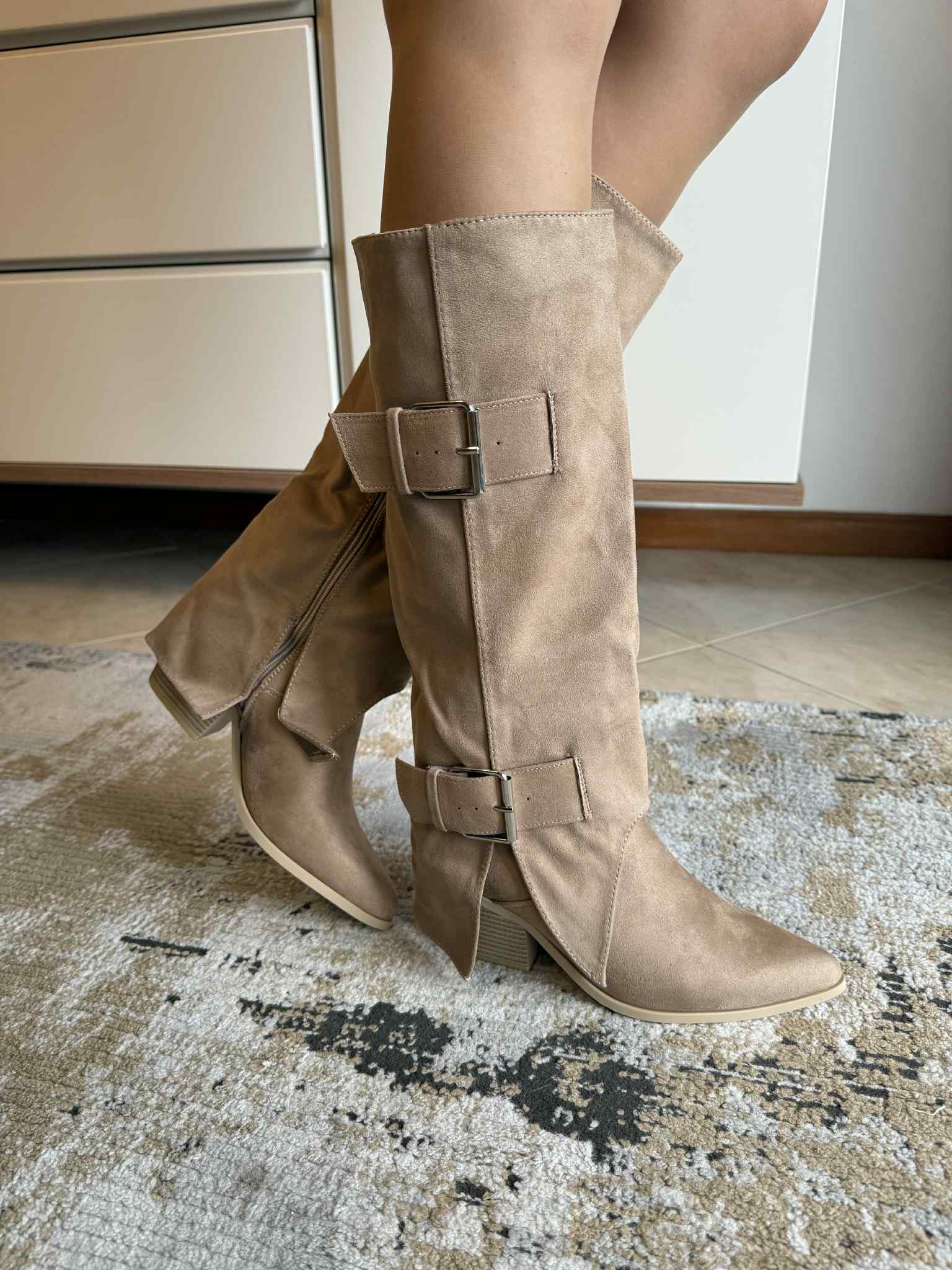 Estas botas de salto largo, no estilo biker, são a combinação ideal de personalidade e elegância. Os canos dobrados, decorados com fivelas, chamam a atenção e acrescentam um estilo único, enquanto o salto garante alguns centímetros a mais (7cm) e muita confiança. Estas botas minimalistas, com bico fino e com fecho prático, são perfeitas para qualquer época do ano.