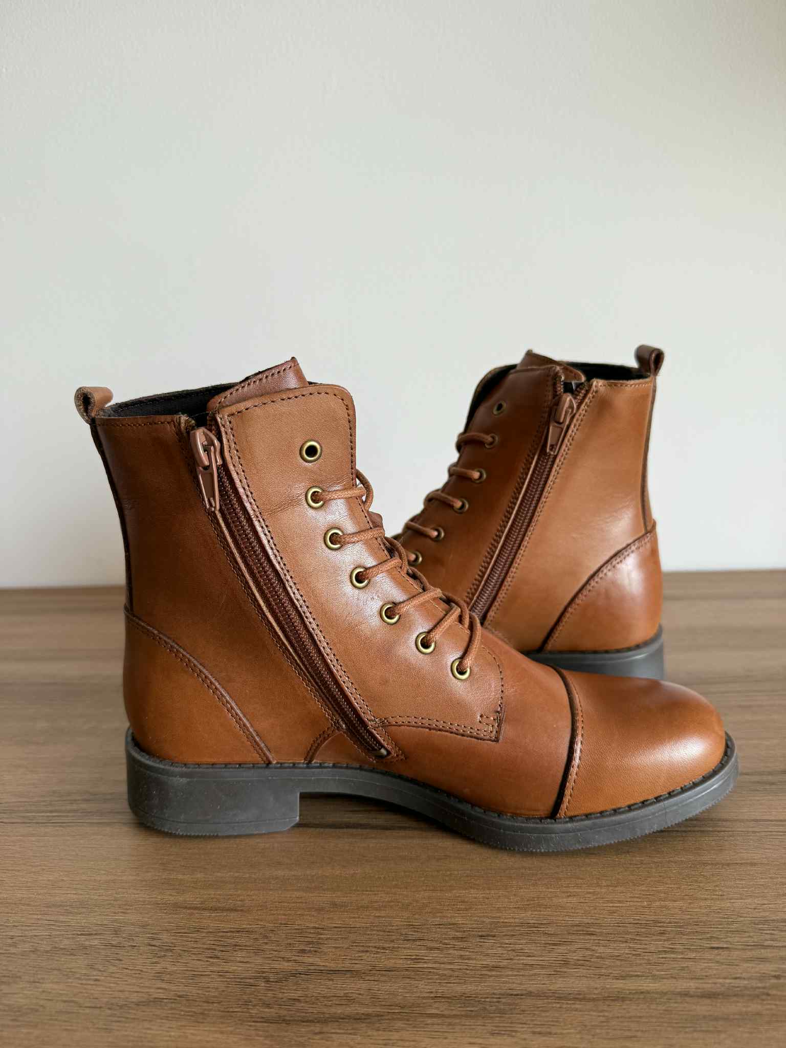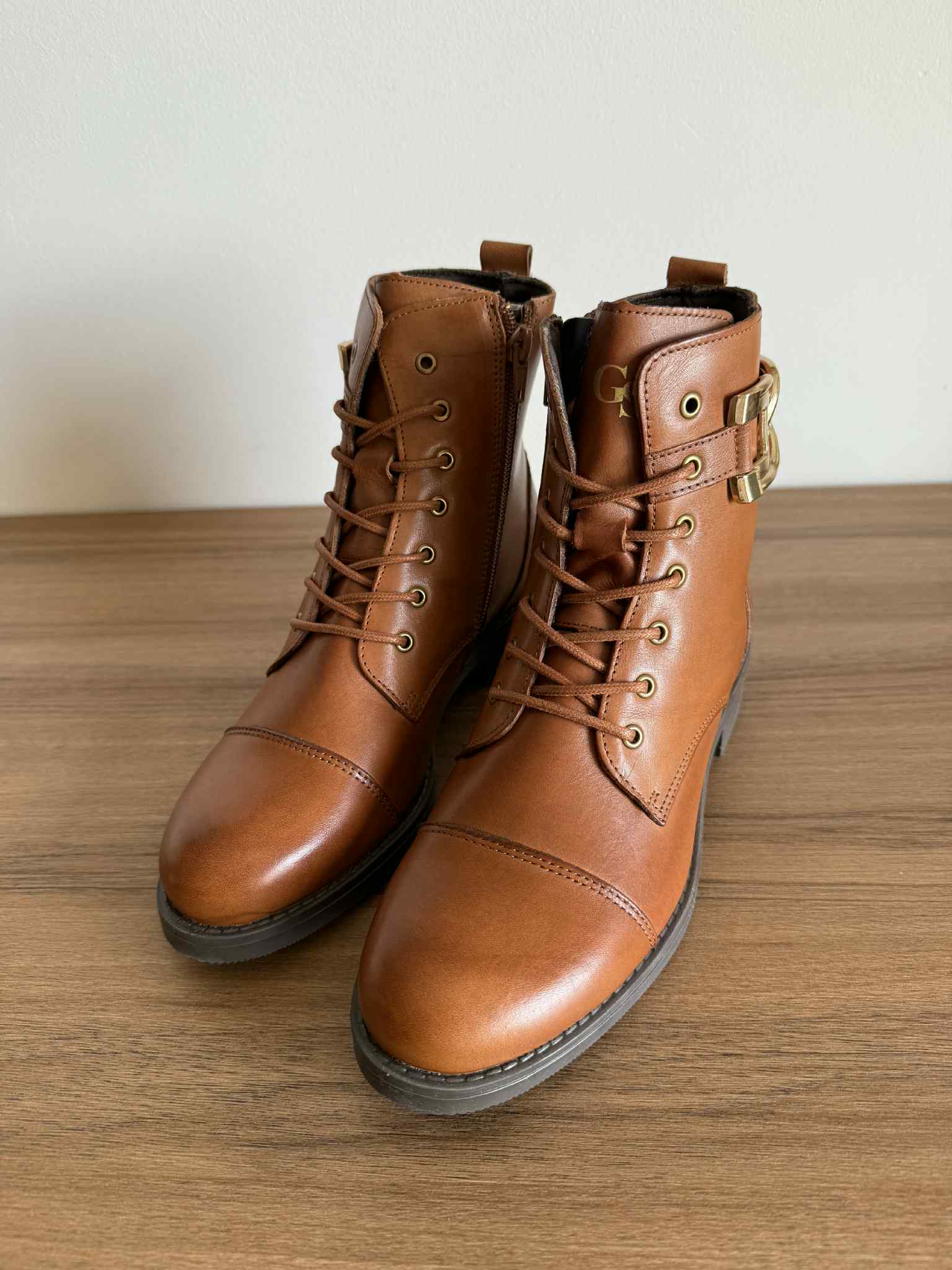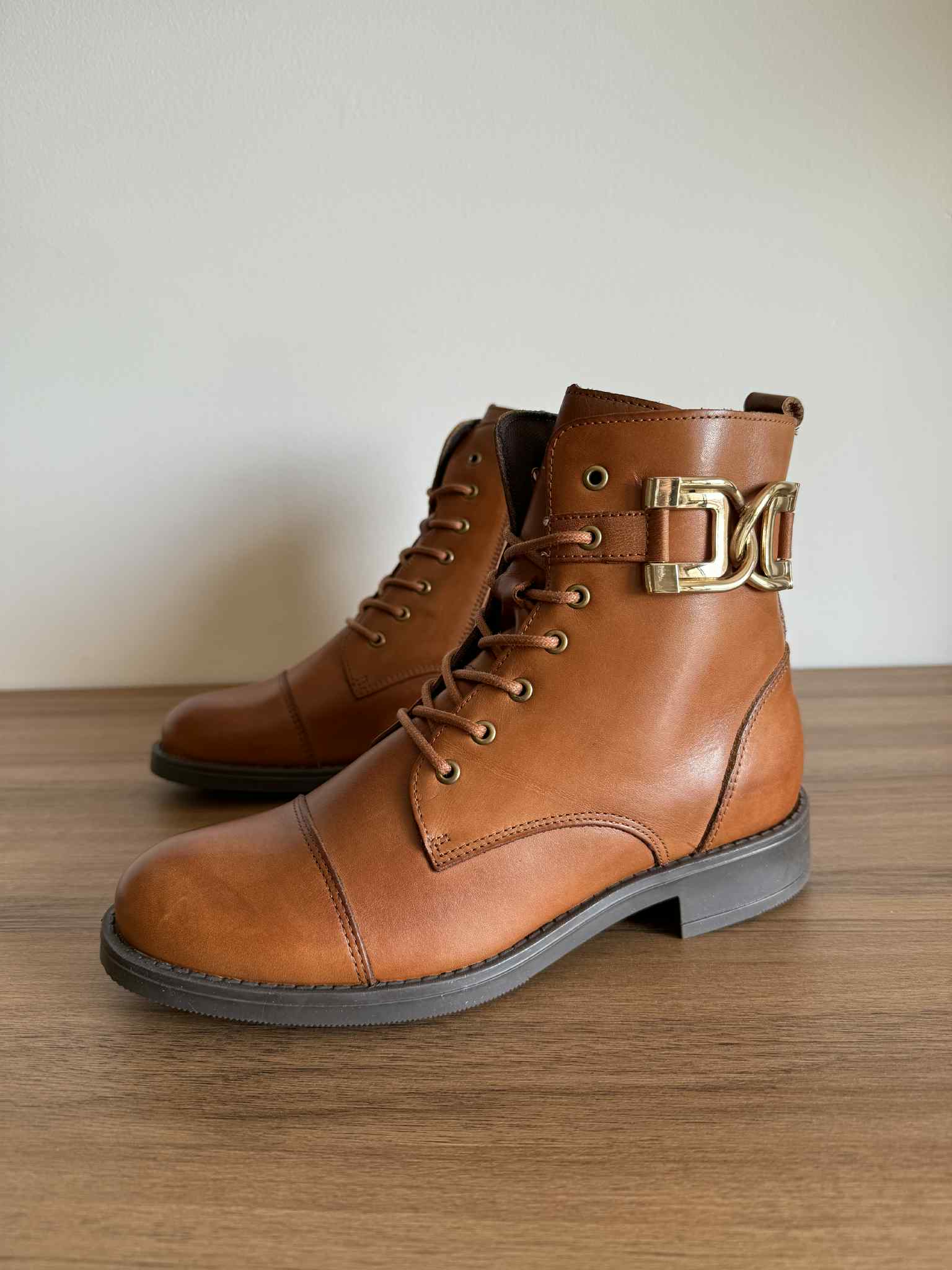 Bota feminina, estilo militar. Da marca Goso. Em pele, fabricadas em Portugal.