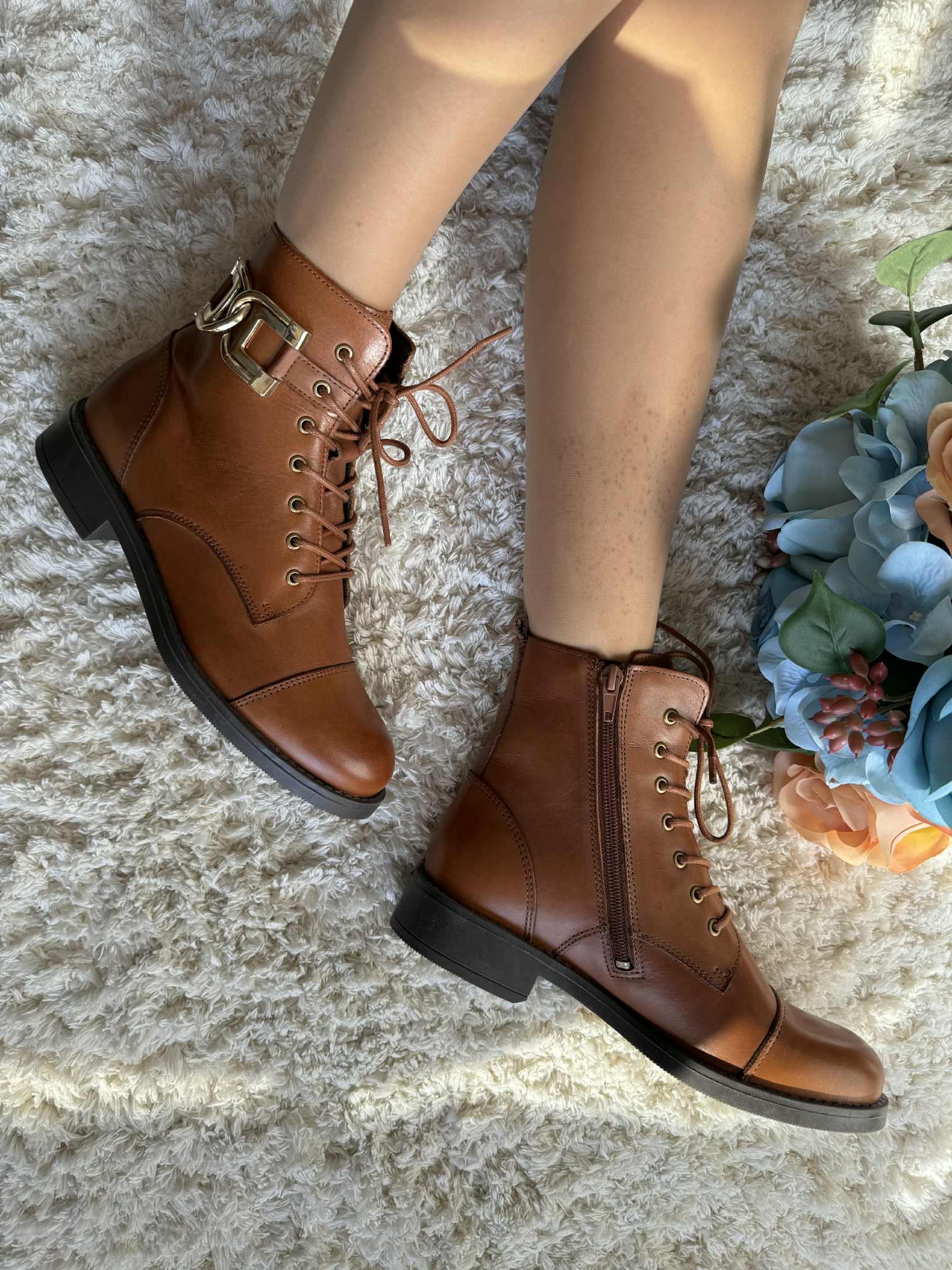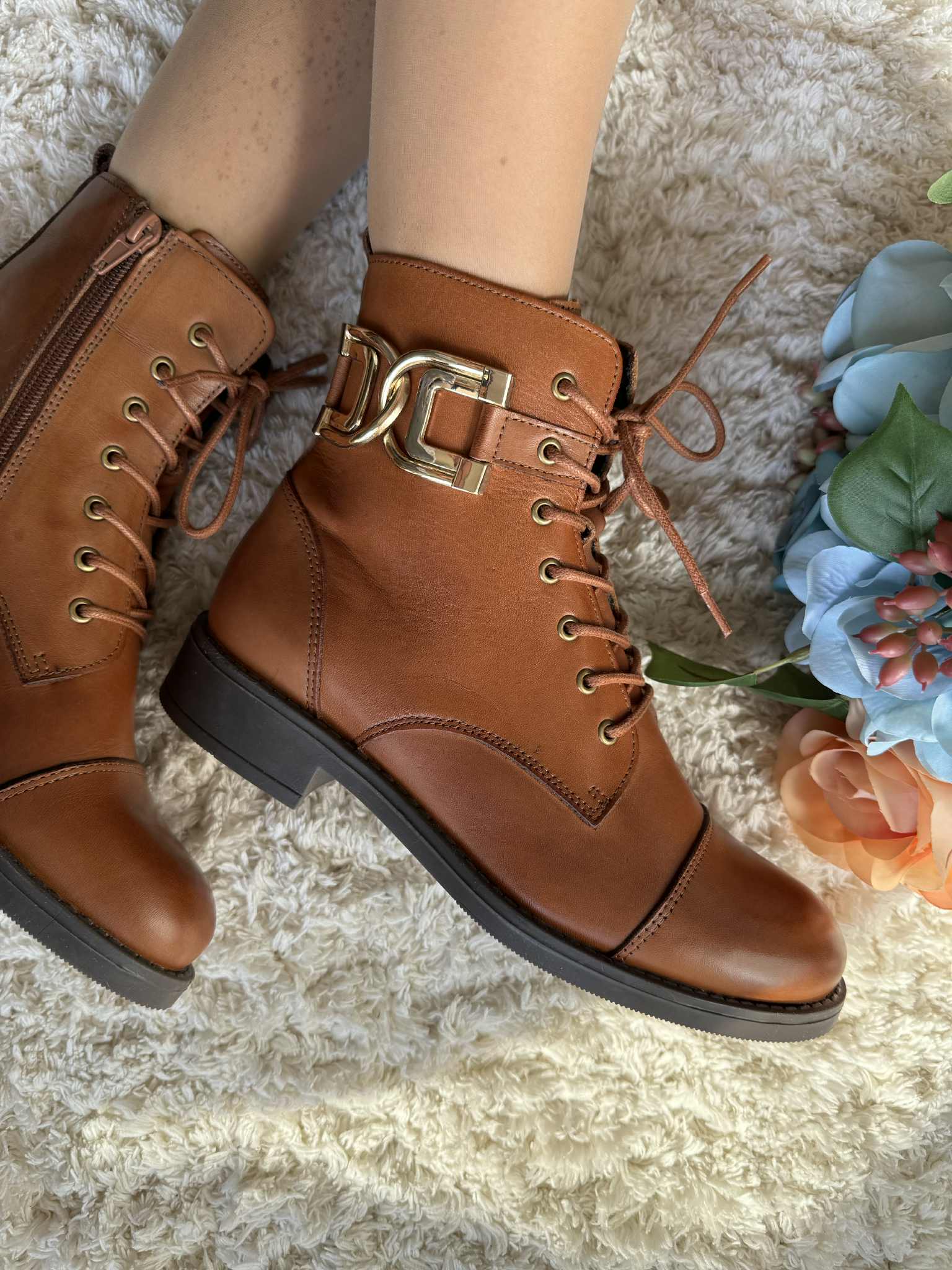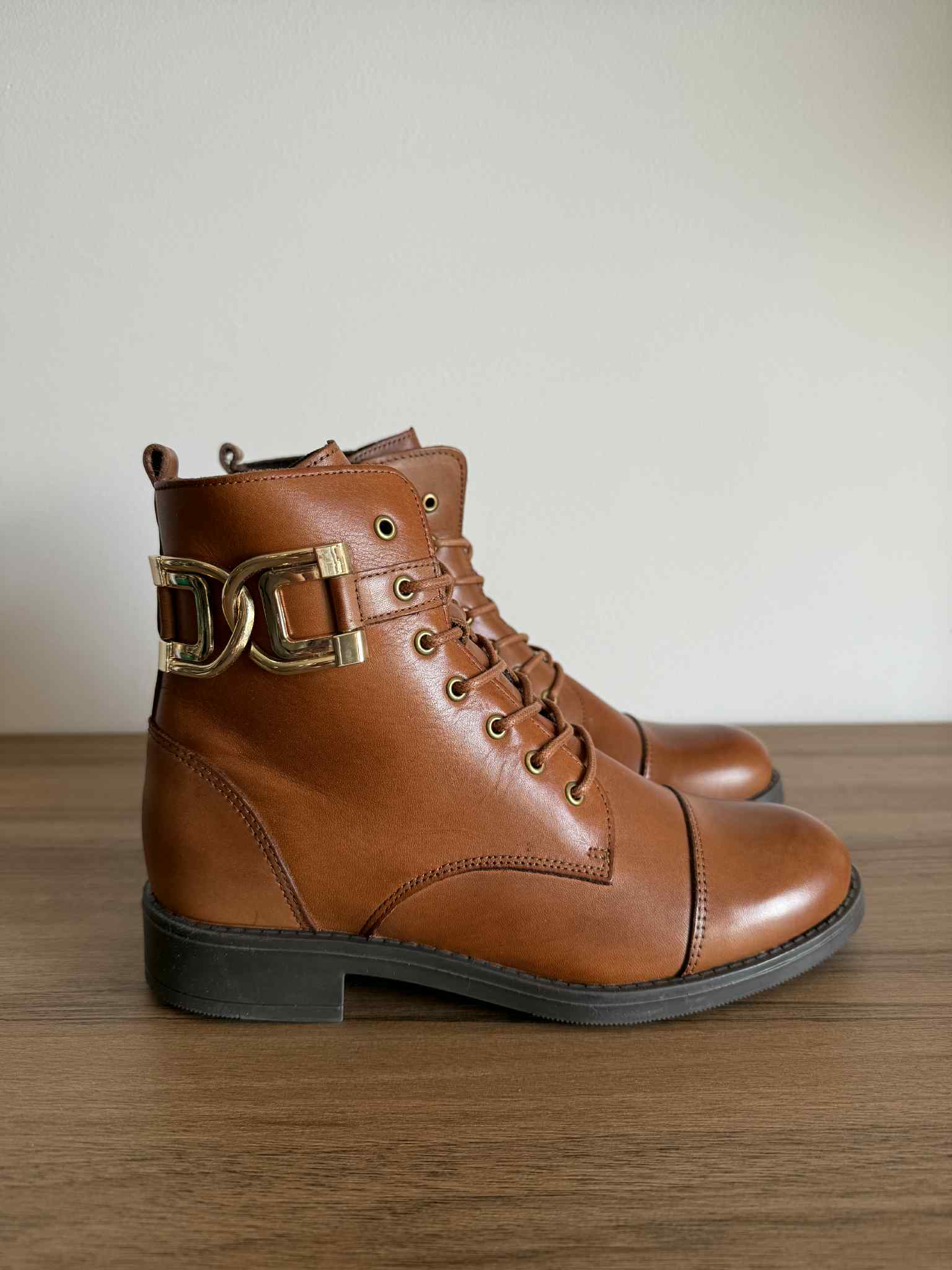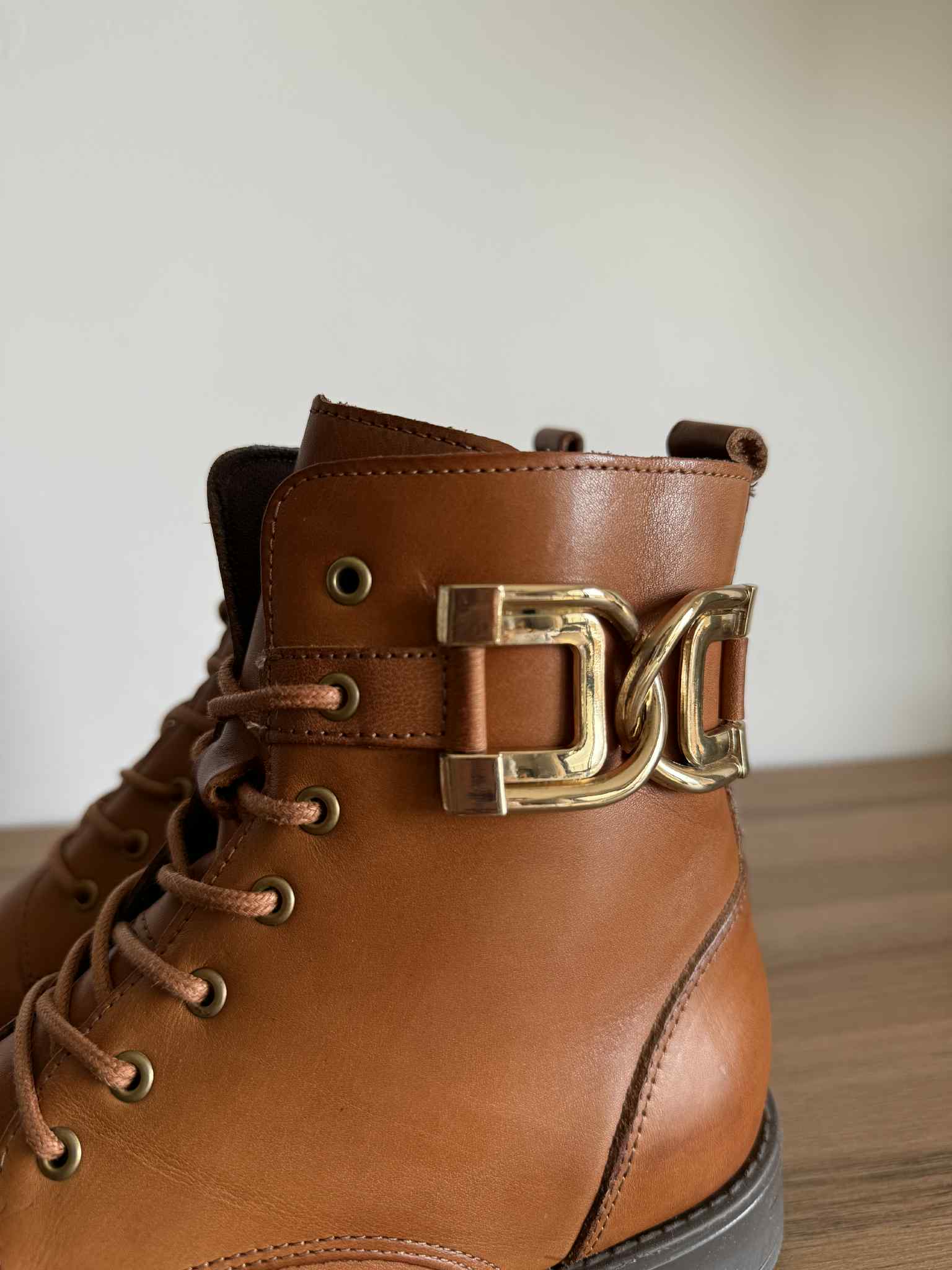 Bota feminina, estilo militar. Da marca Goso. Em pele, fabricadas em Portugal.