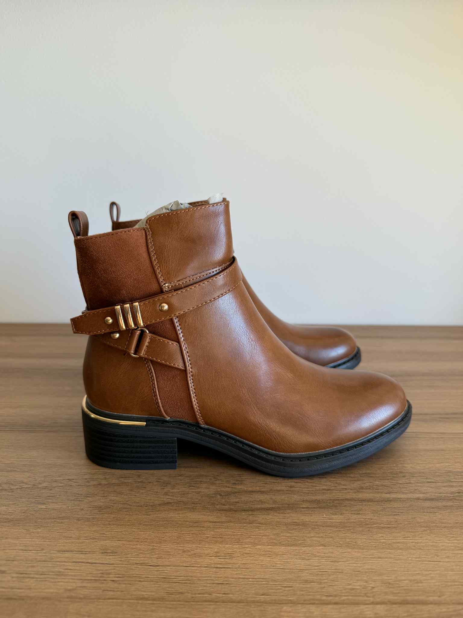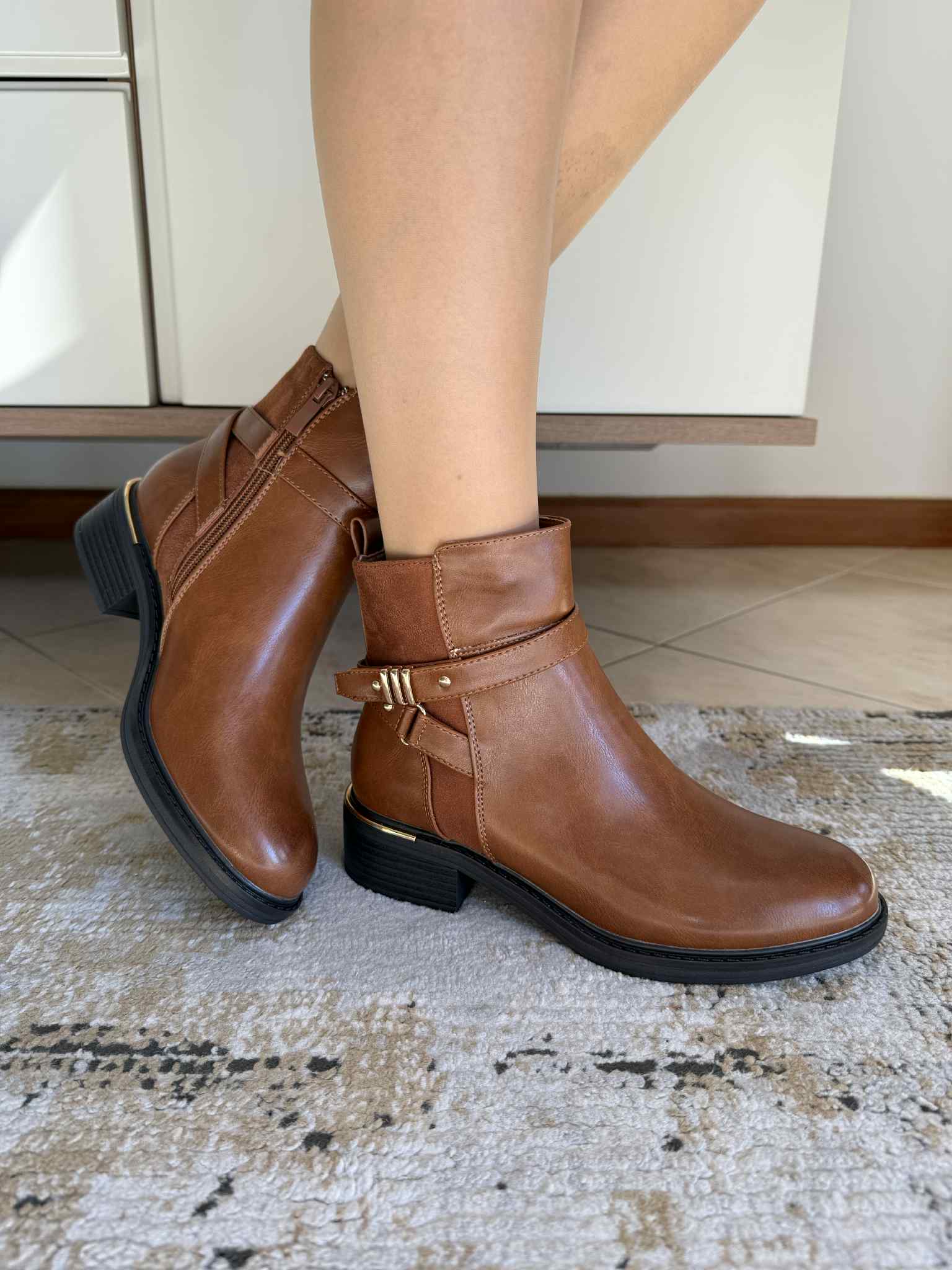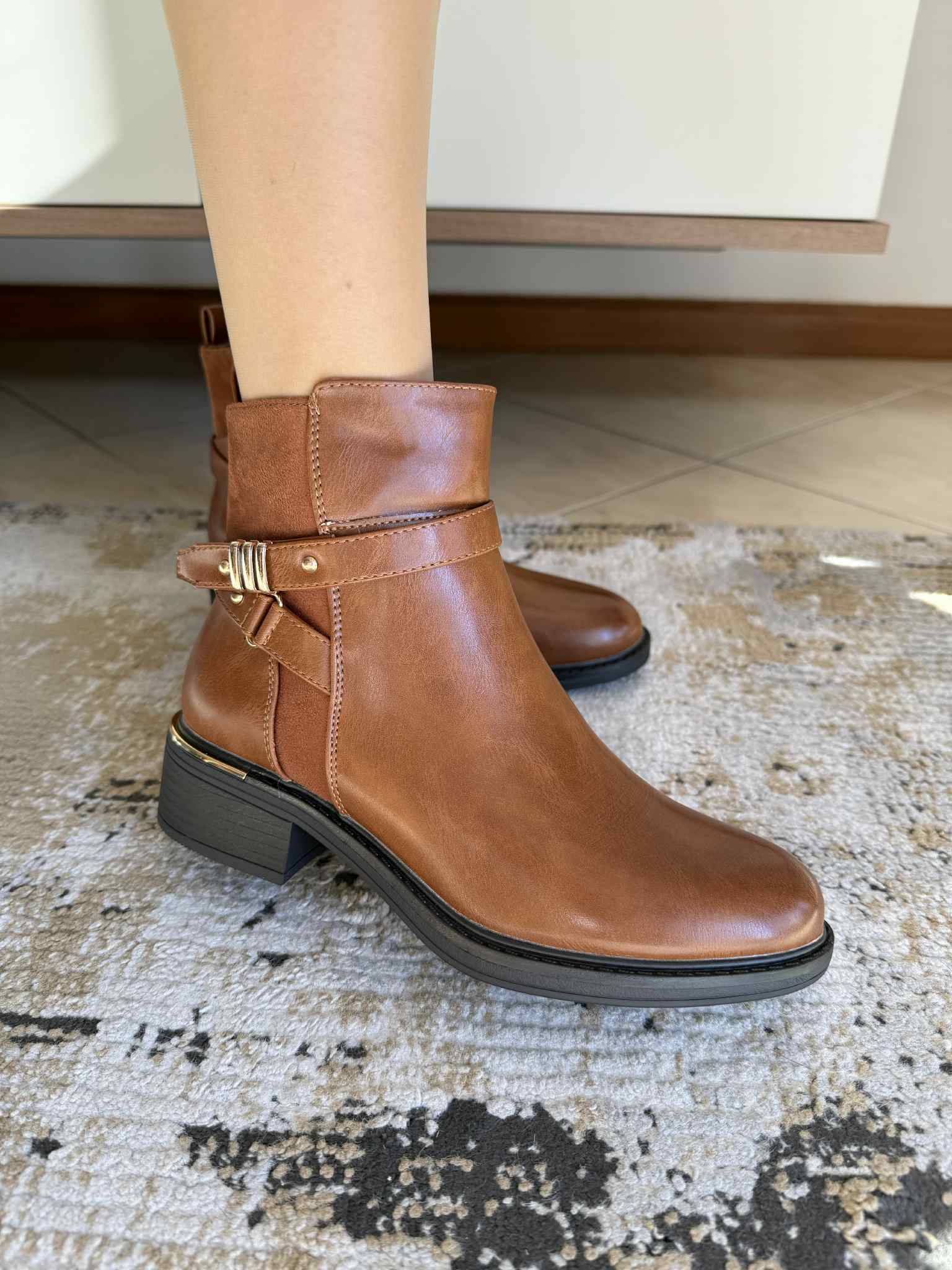 Botim baixo detalhes dourados – Camel