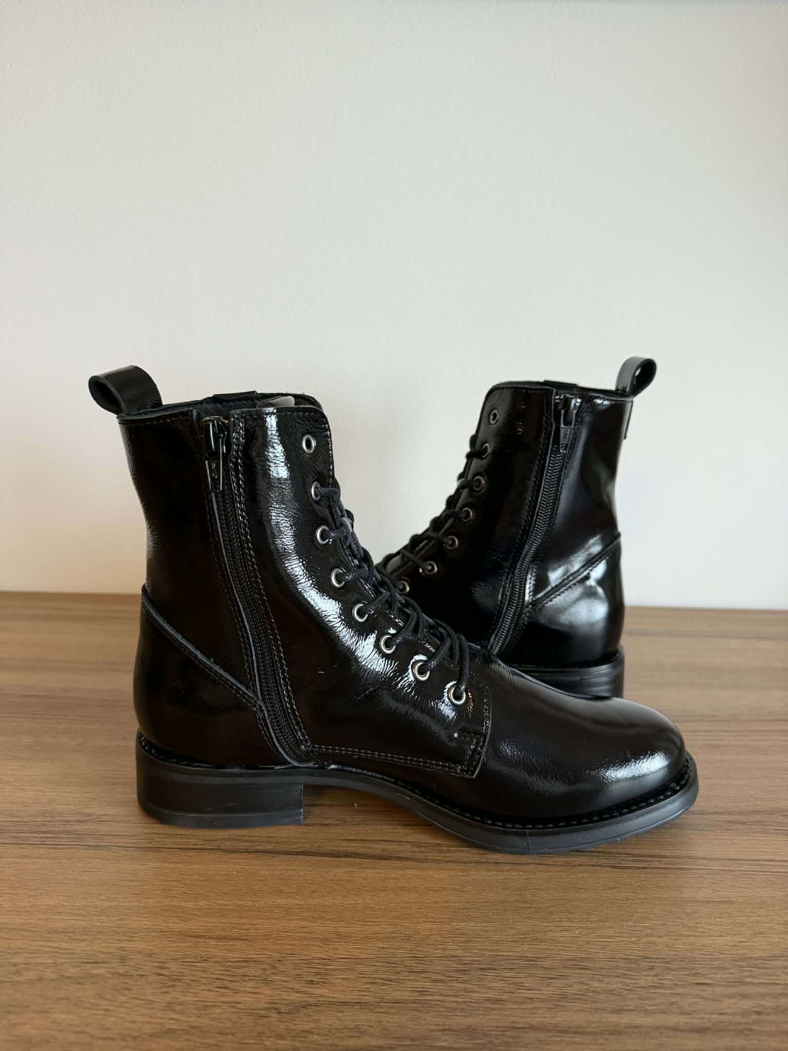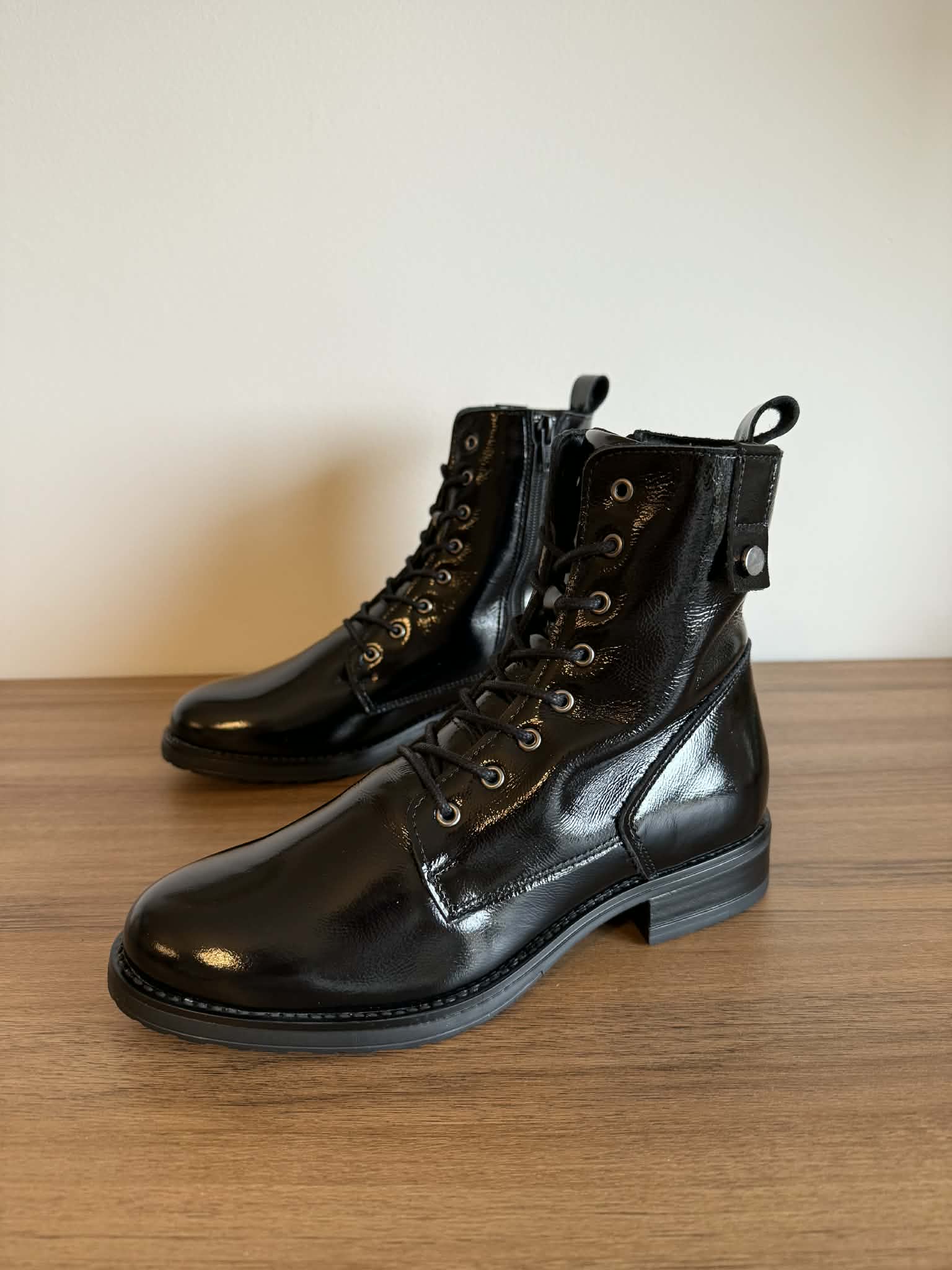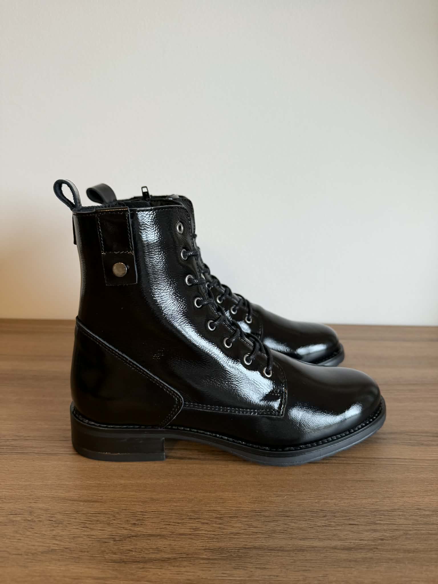 Botim estilo militar em pele envernizada – preto