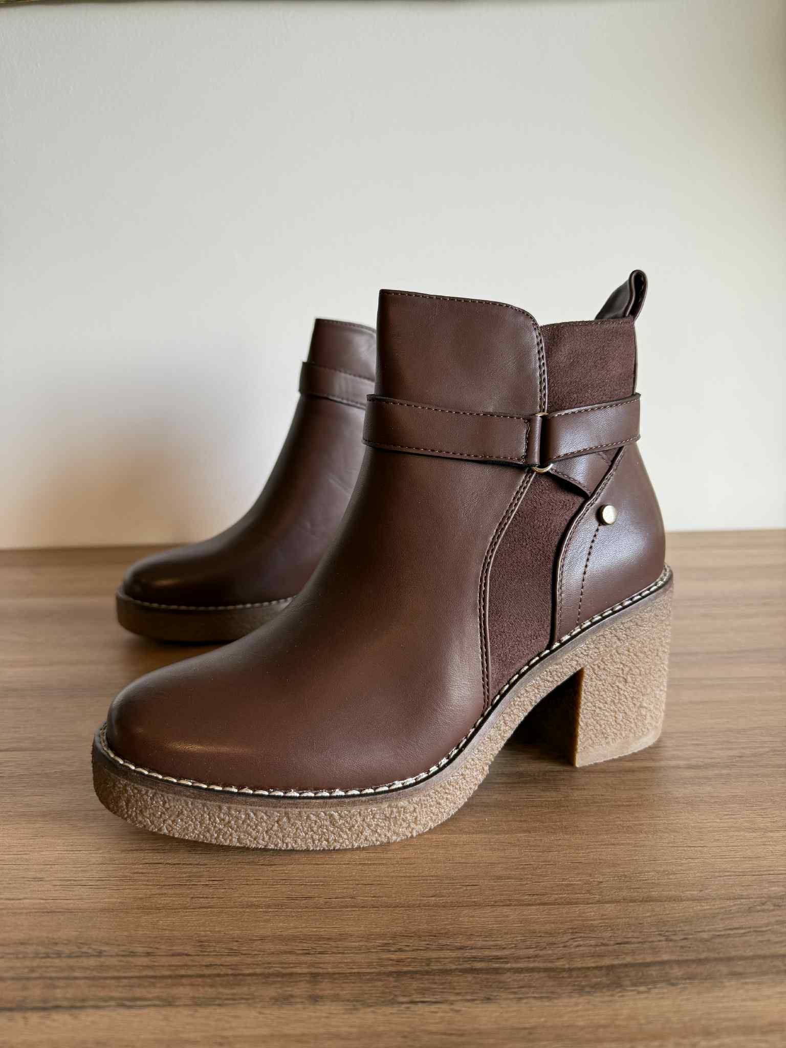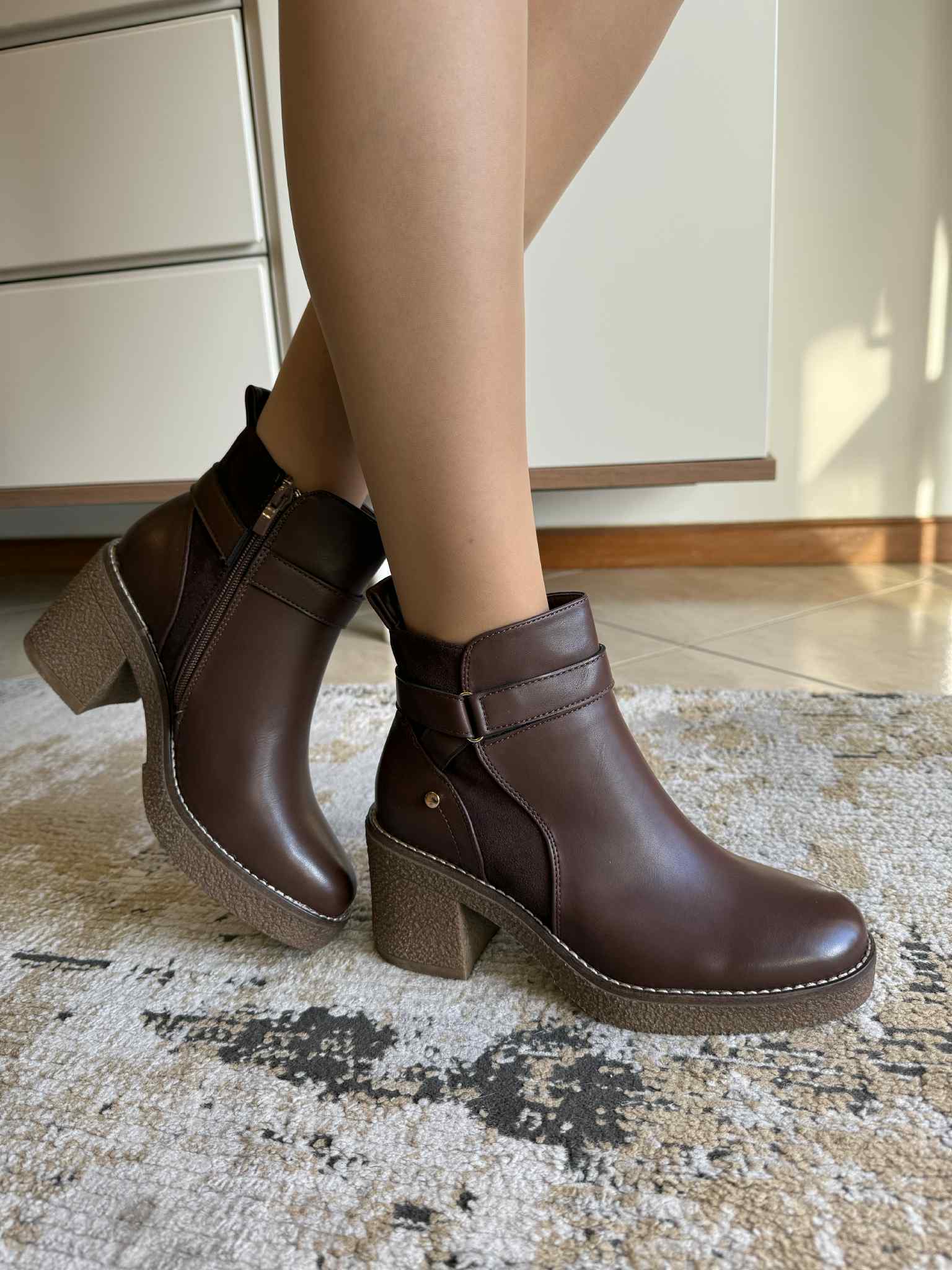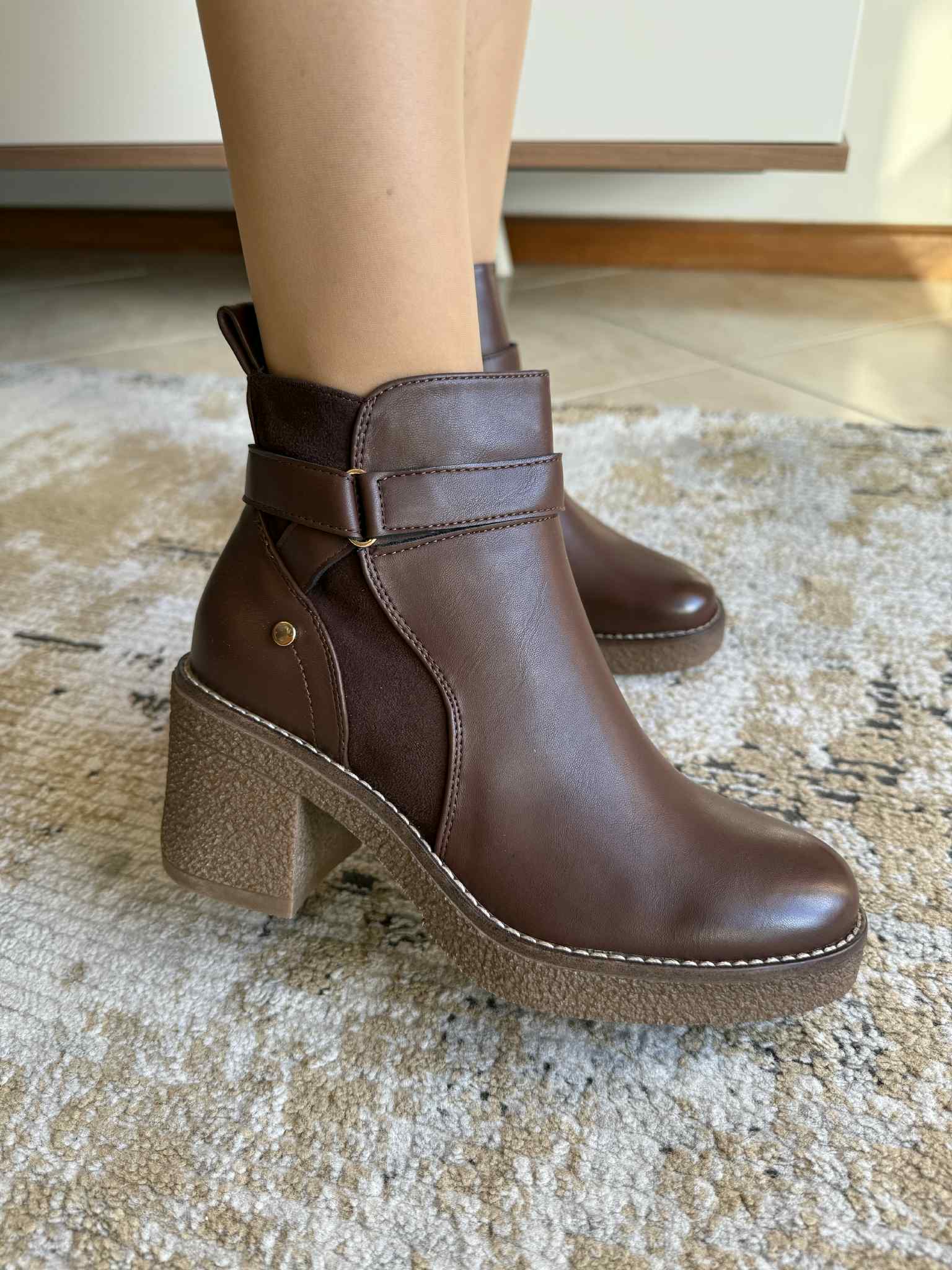 Botim salto bloco castanho