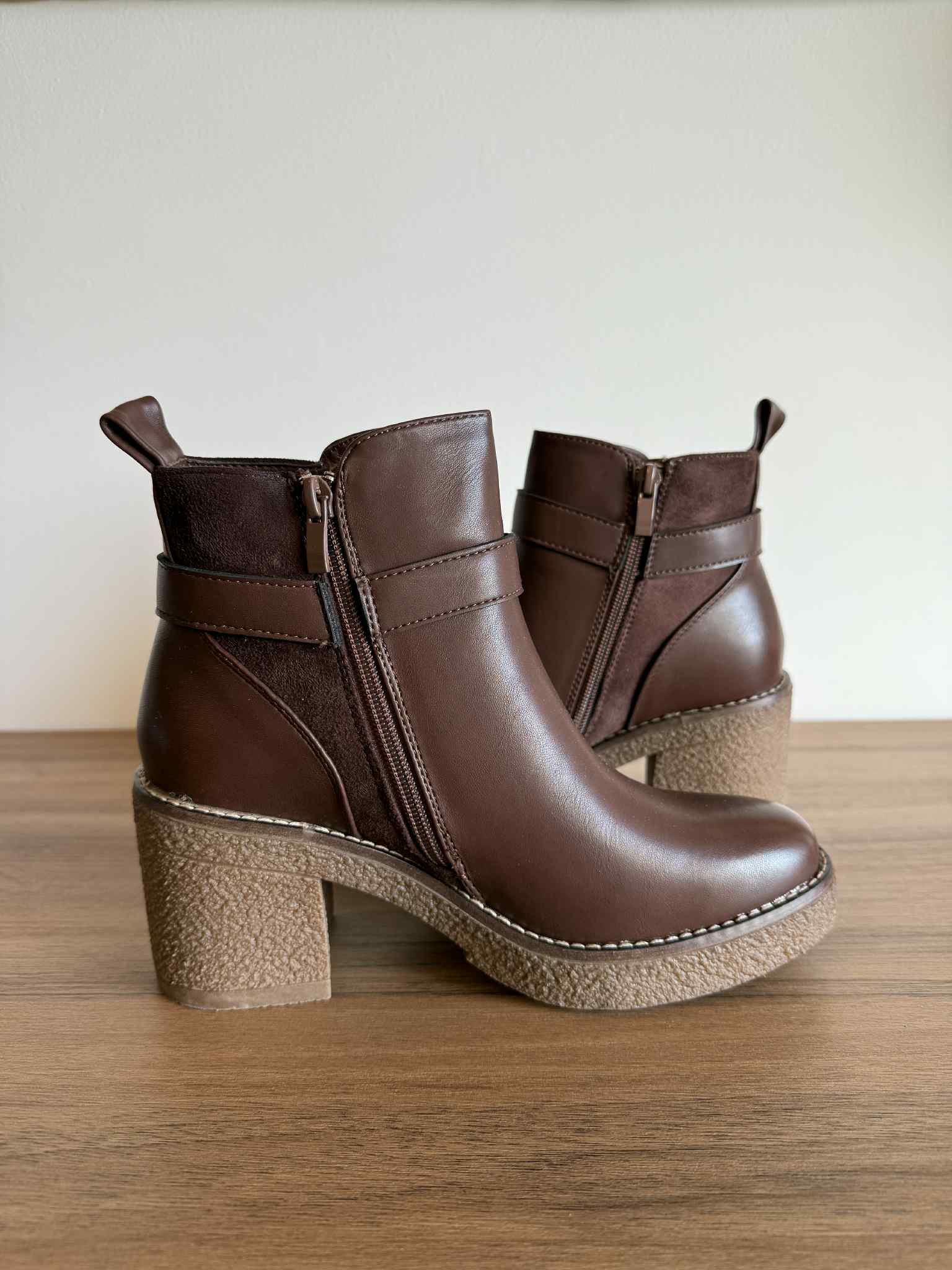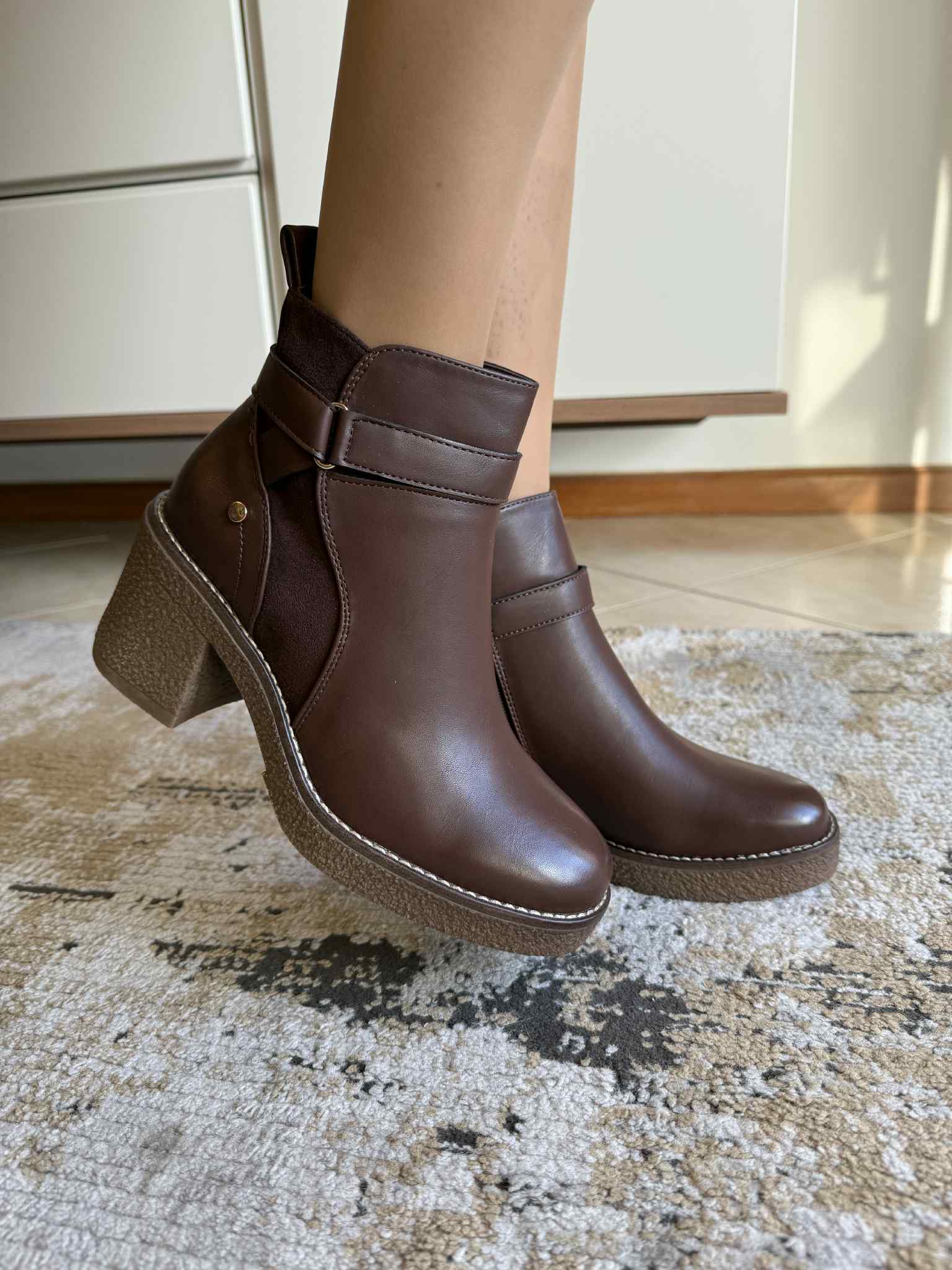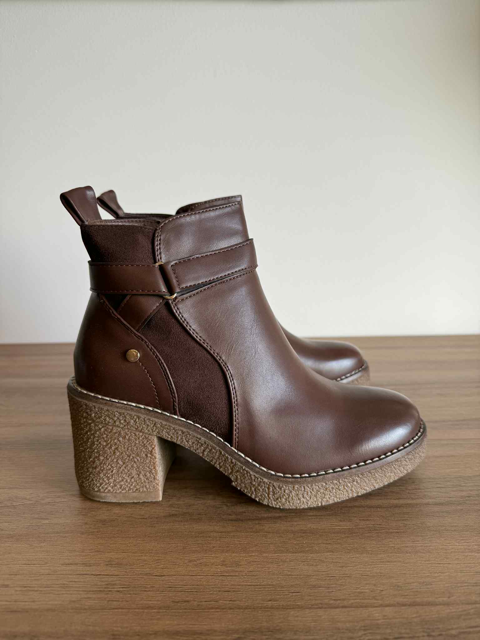 Botim salto bloco castanho