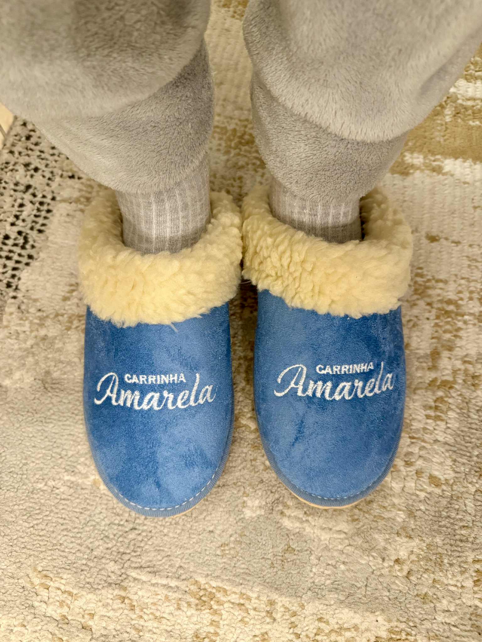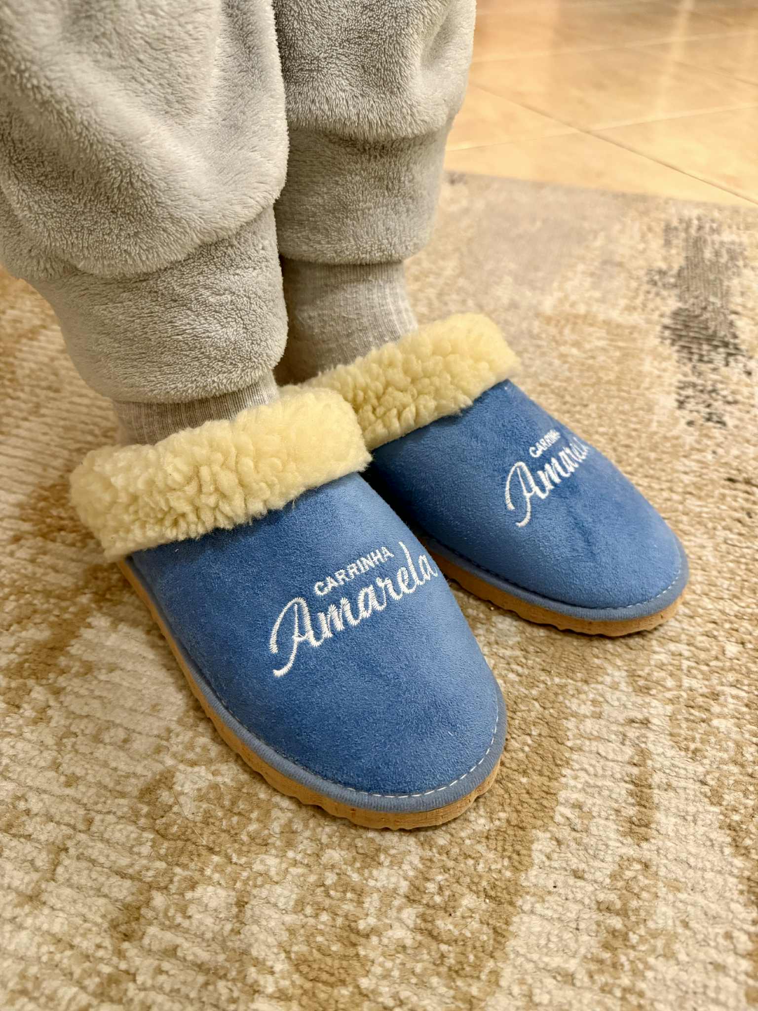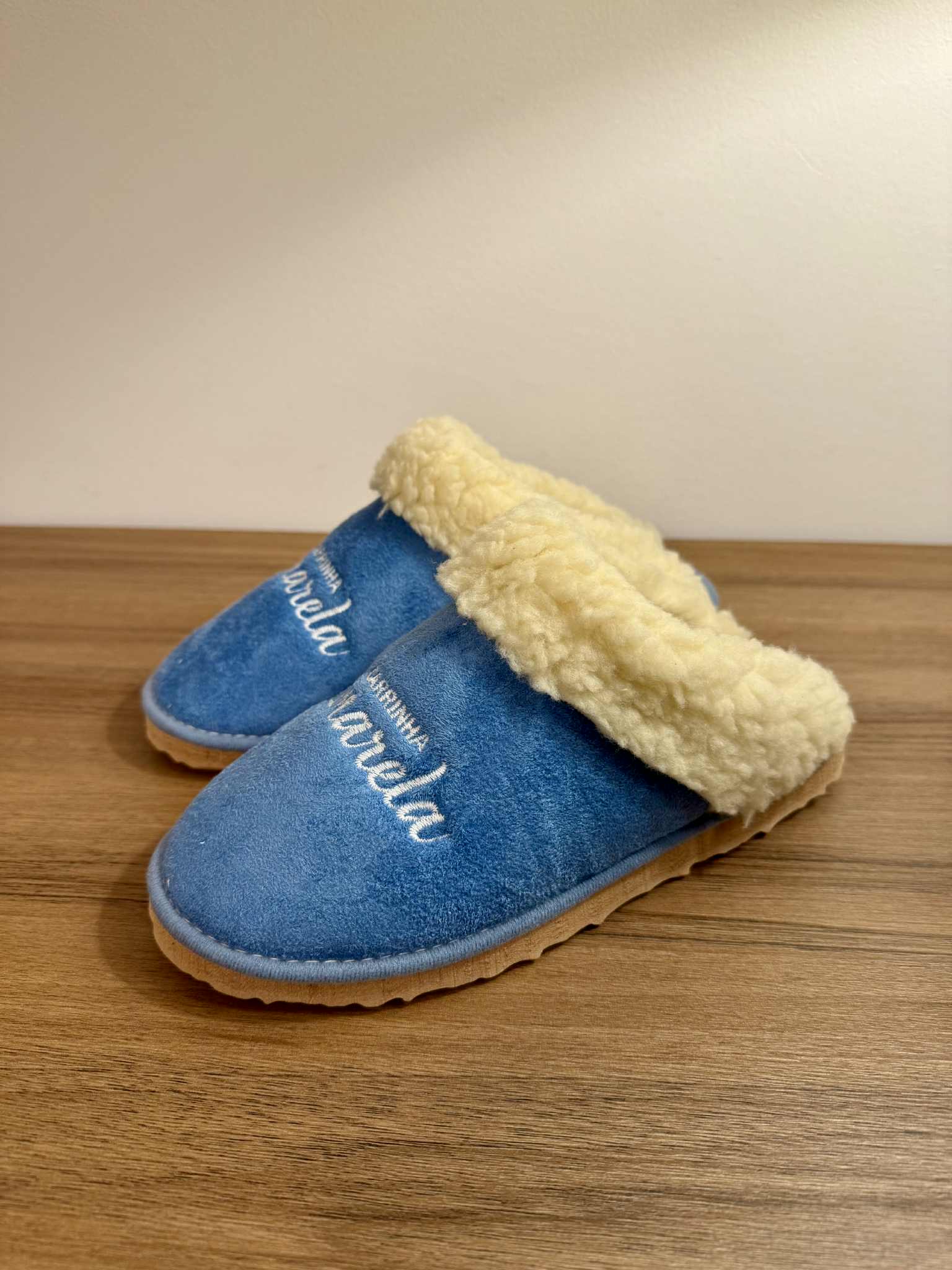 Chinelo de quarto estilo chinelo da serra, com acabamento em camurça. Modelo aberto, forro interior em pelo. Sola antiderrapante.