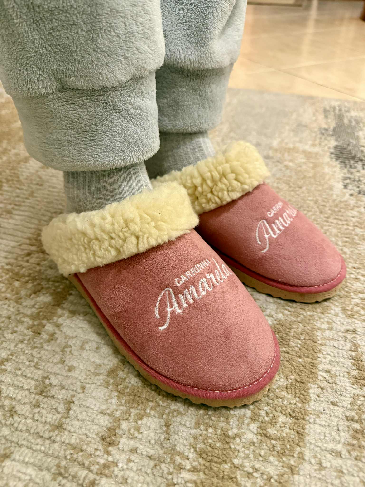 Chinelo de quarto estilo chinelo da serra, com acabamento em camurça. Modelo aberto, forro interior em pelo. Sola antiderrapante.