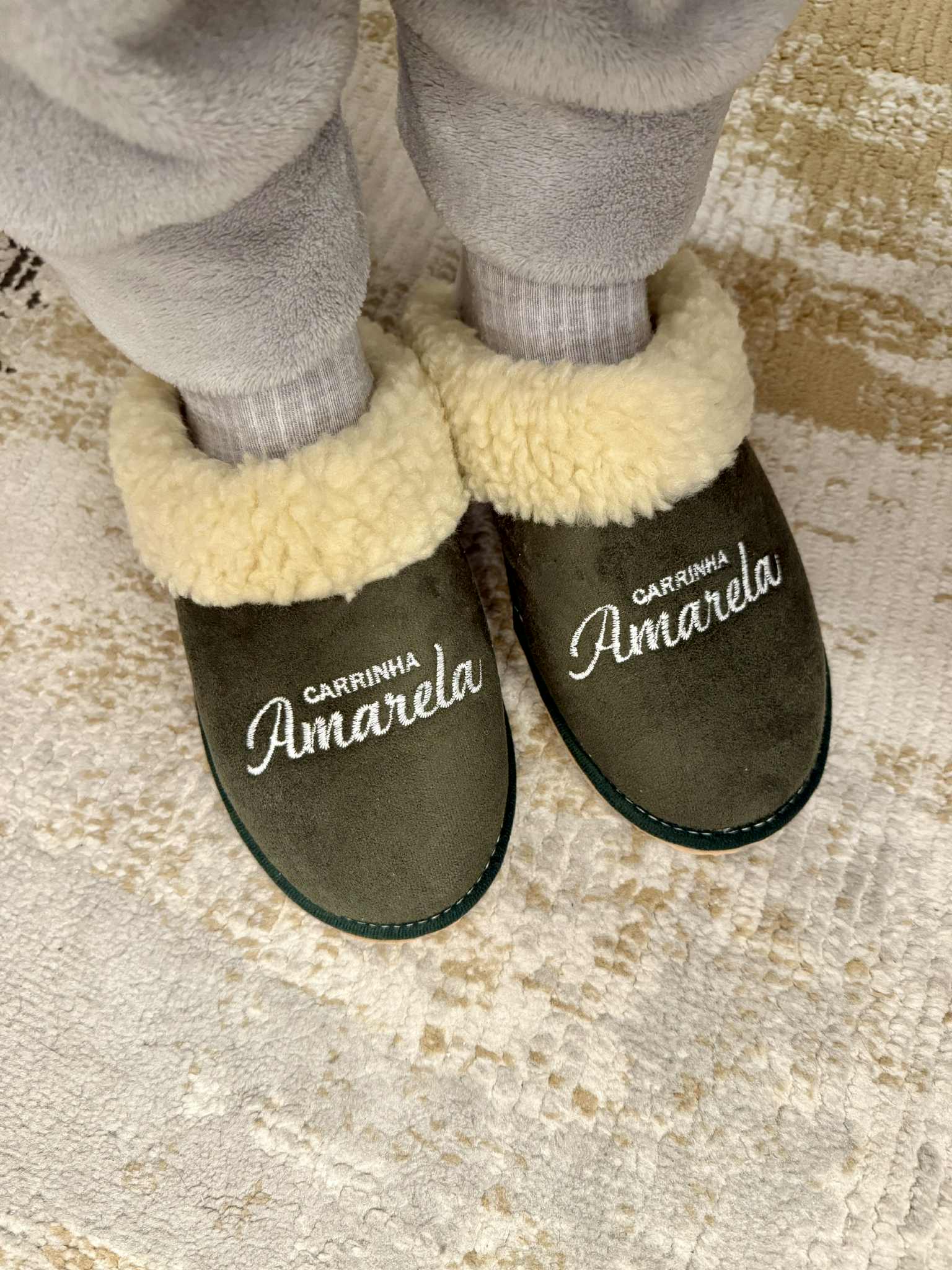 Chinelo de quarto estilo chinelo da serra, com acabamento em camurça. Modelo aberto, forro interior em pelo. Sola antiderrapante.