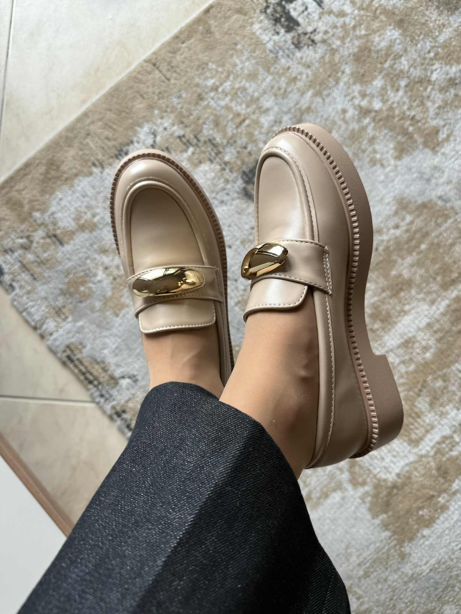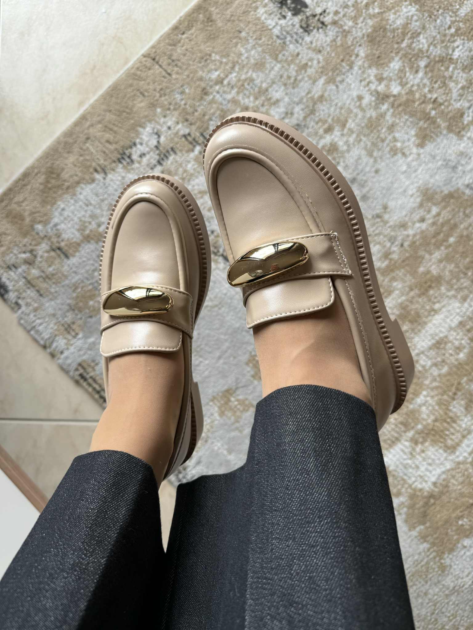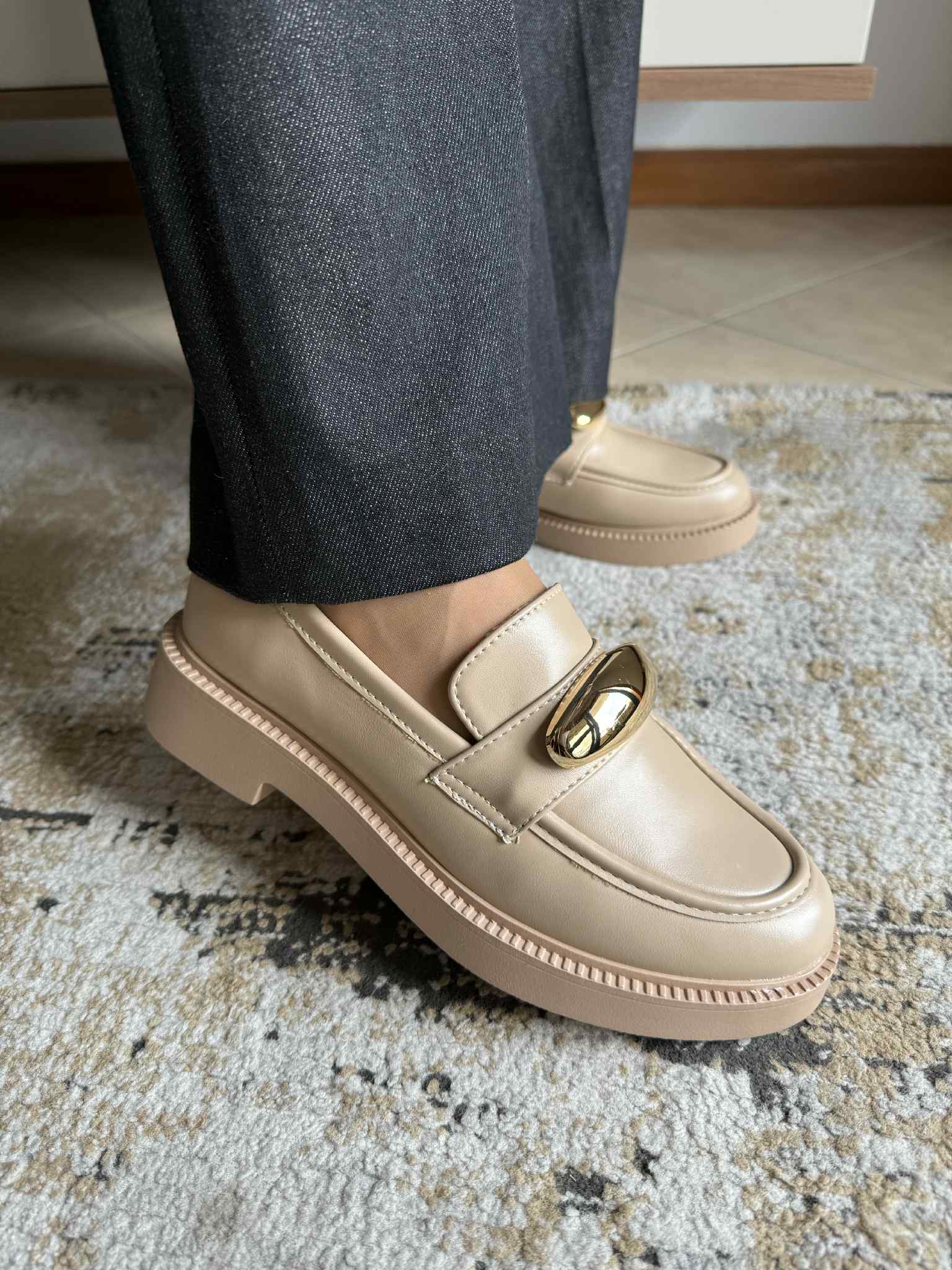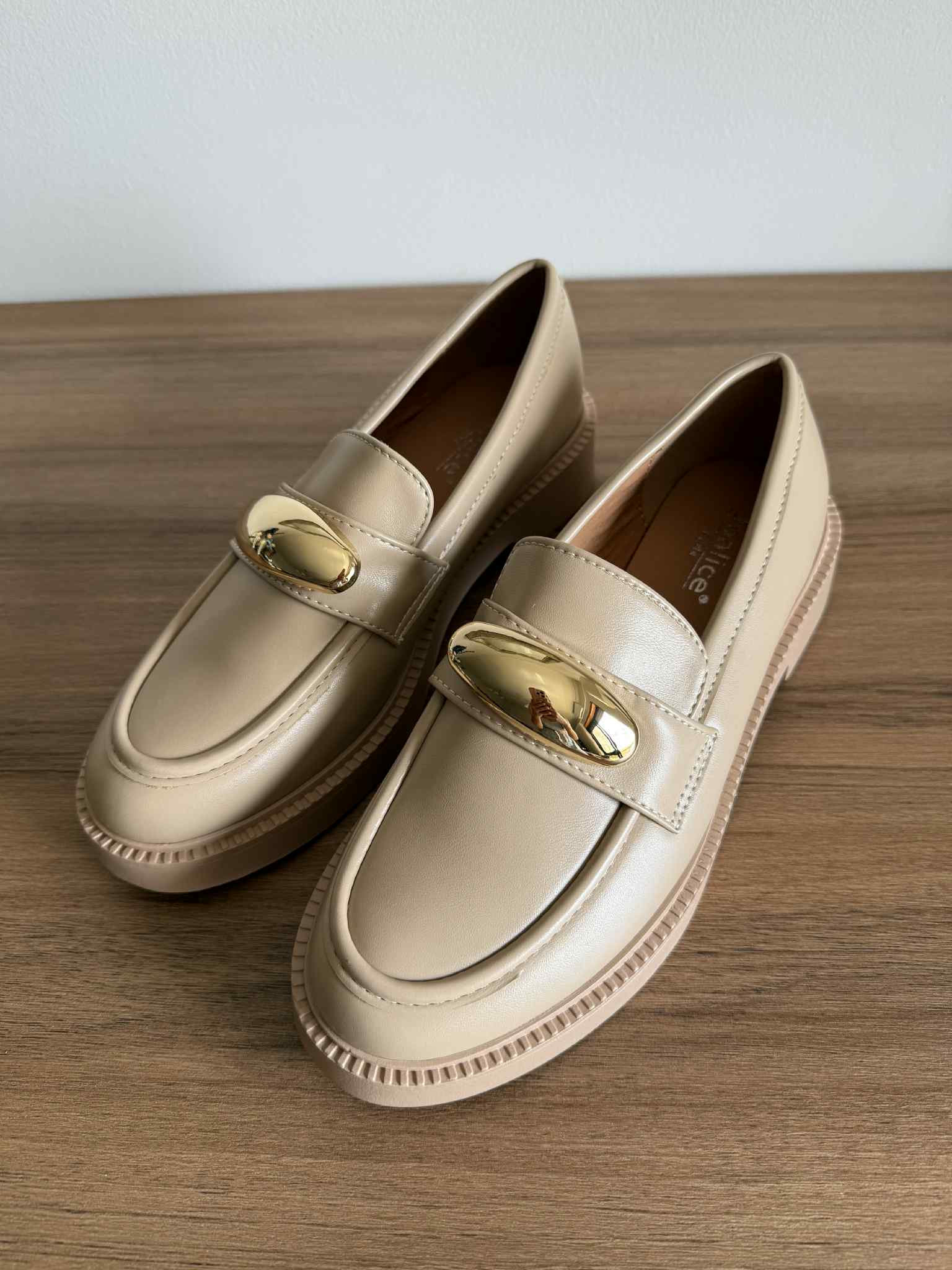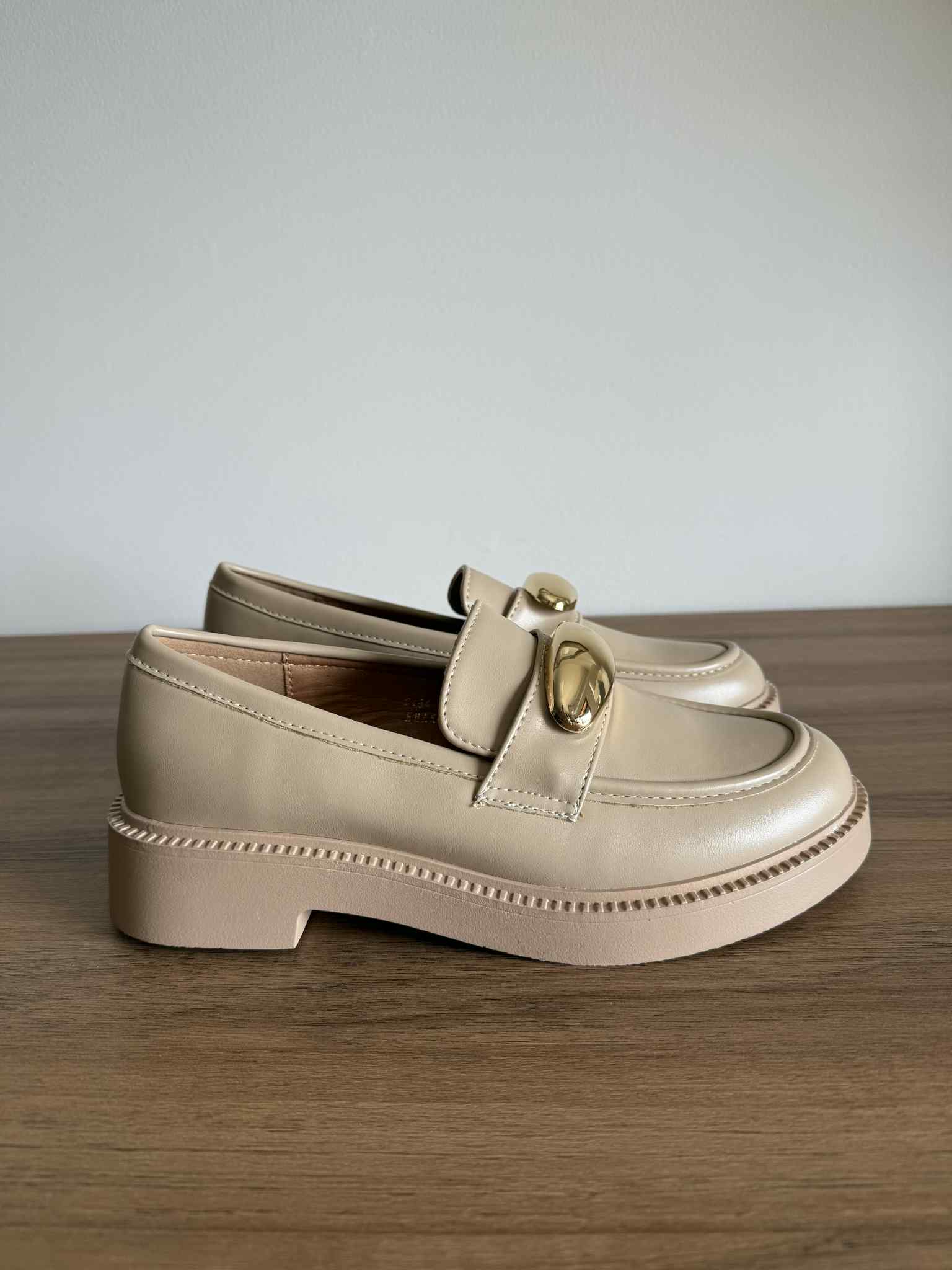 Loafer Aplicação Dourada – Cáqui