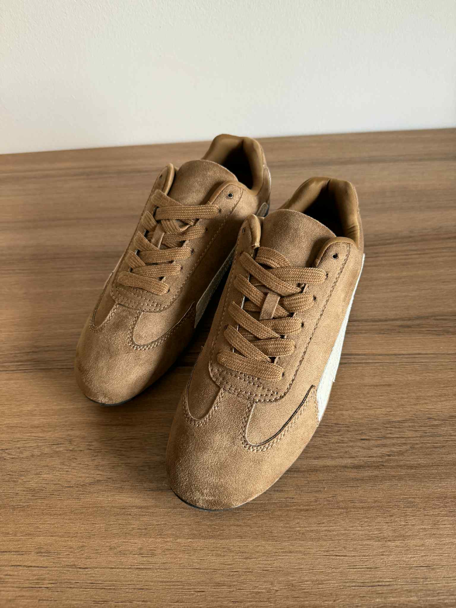 Sapatilha unissexo, com sola rasa de borracha maleável, da marca Corina. Em camurça sintética e interior têxtil muito macio.