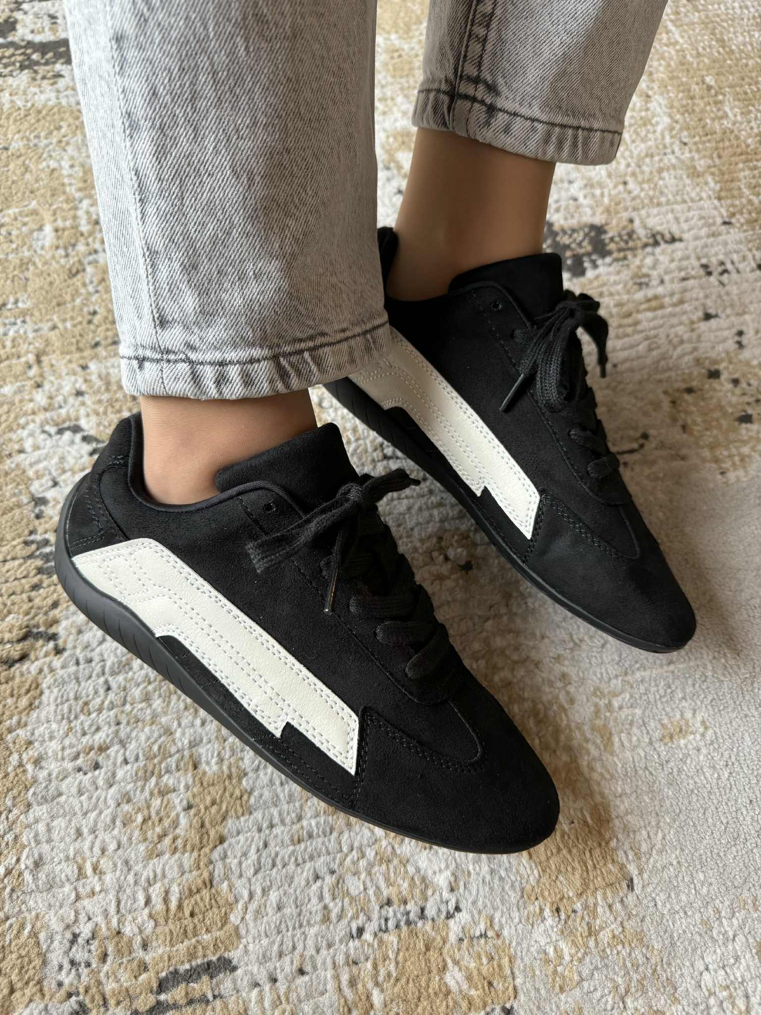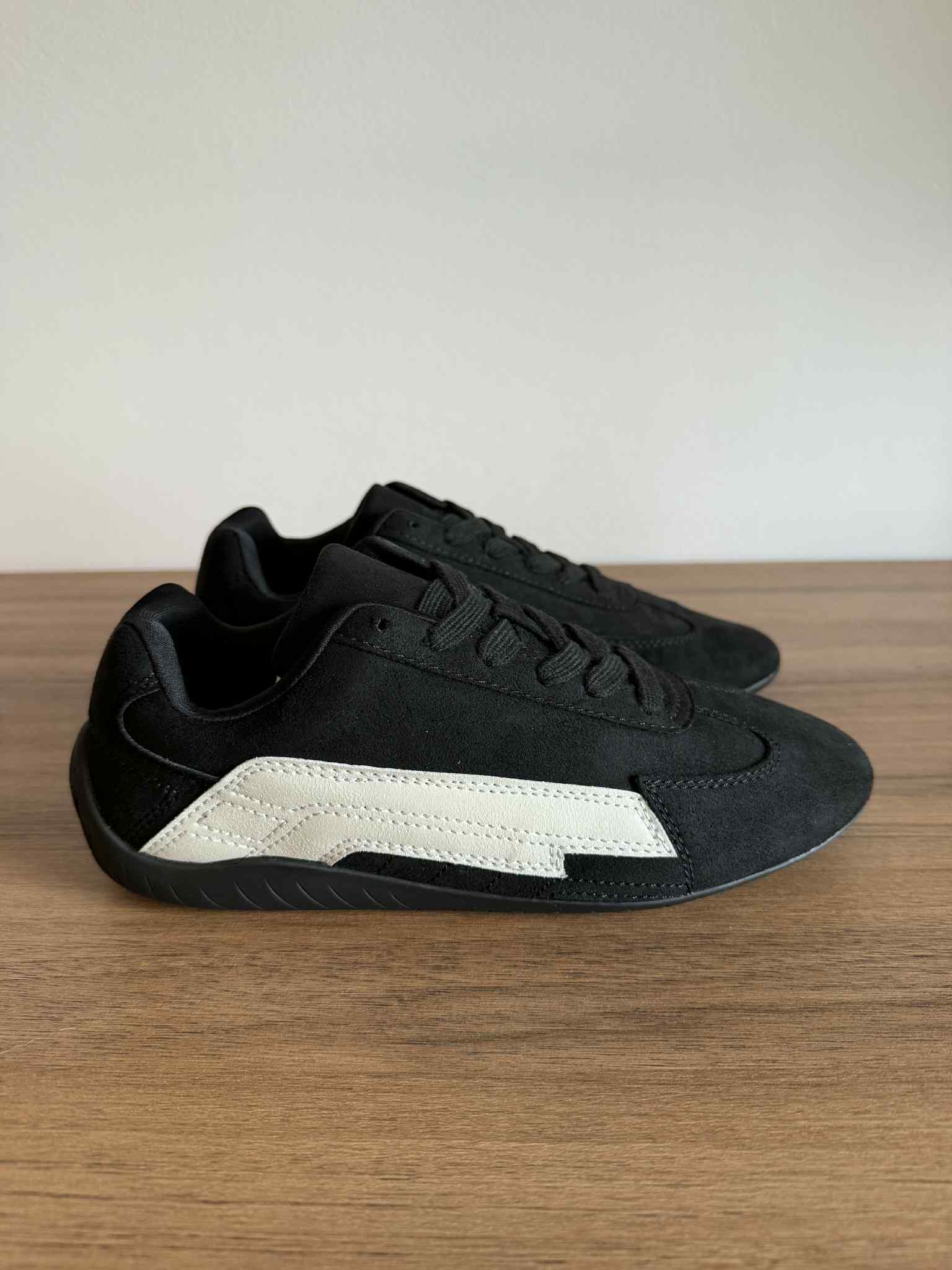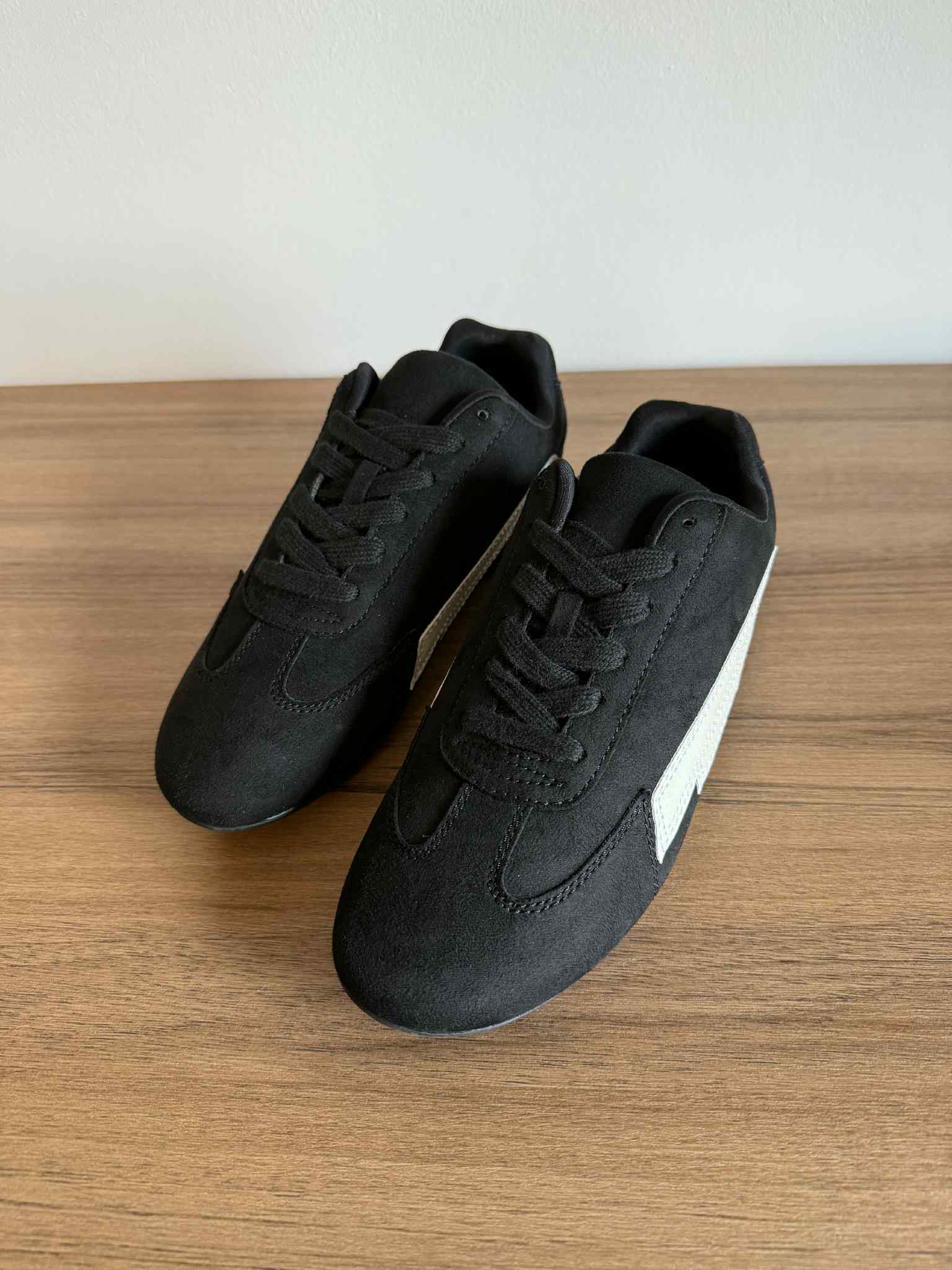 Sapatilha unissexo, com sola rasa de borracha maleável, da marca Corina. Em camurça sintética e interior têxtil muito macio.