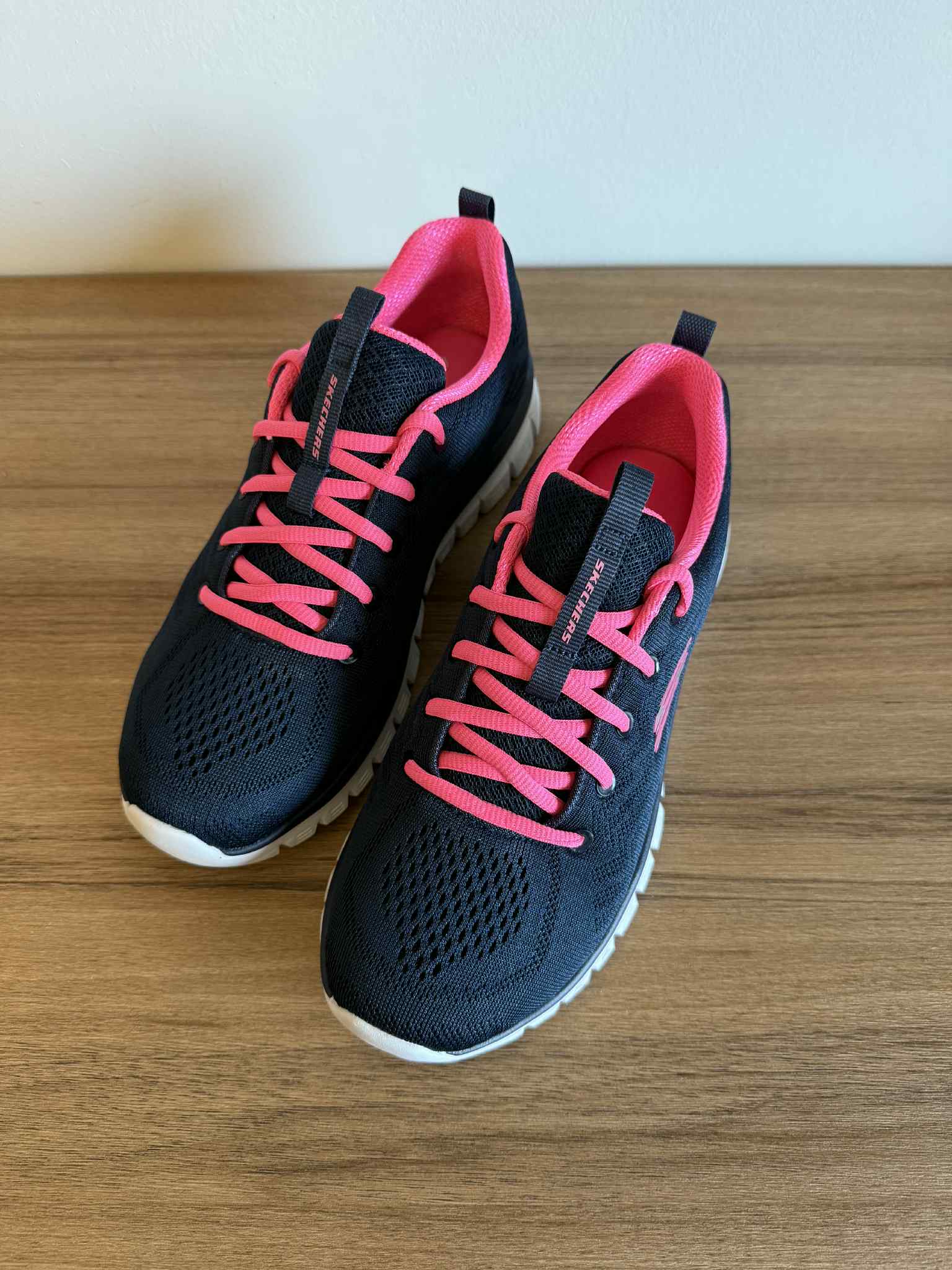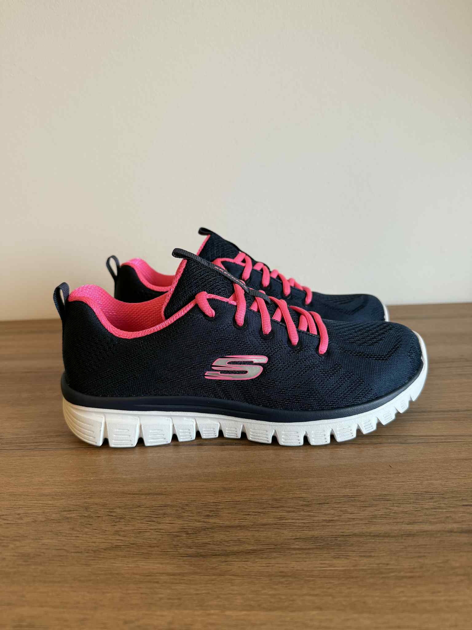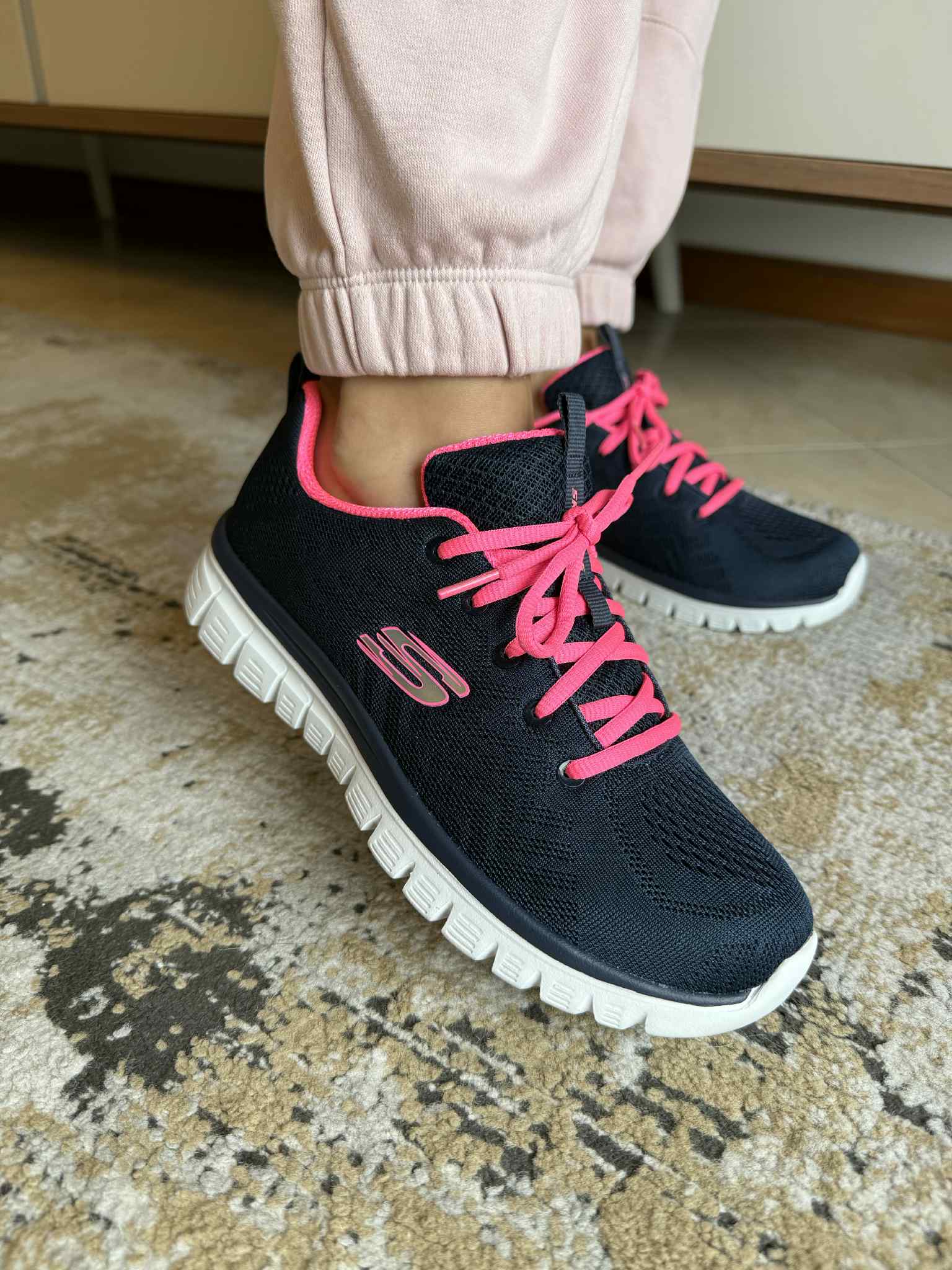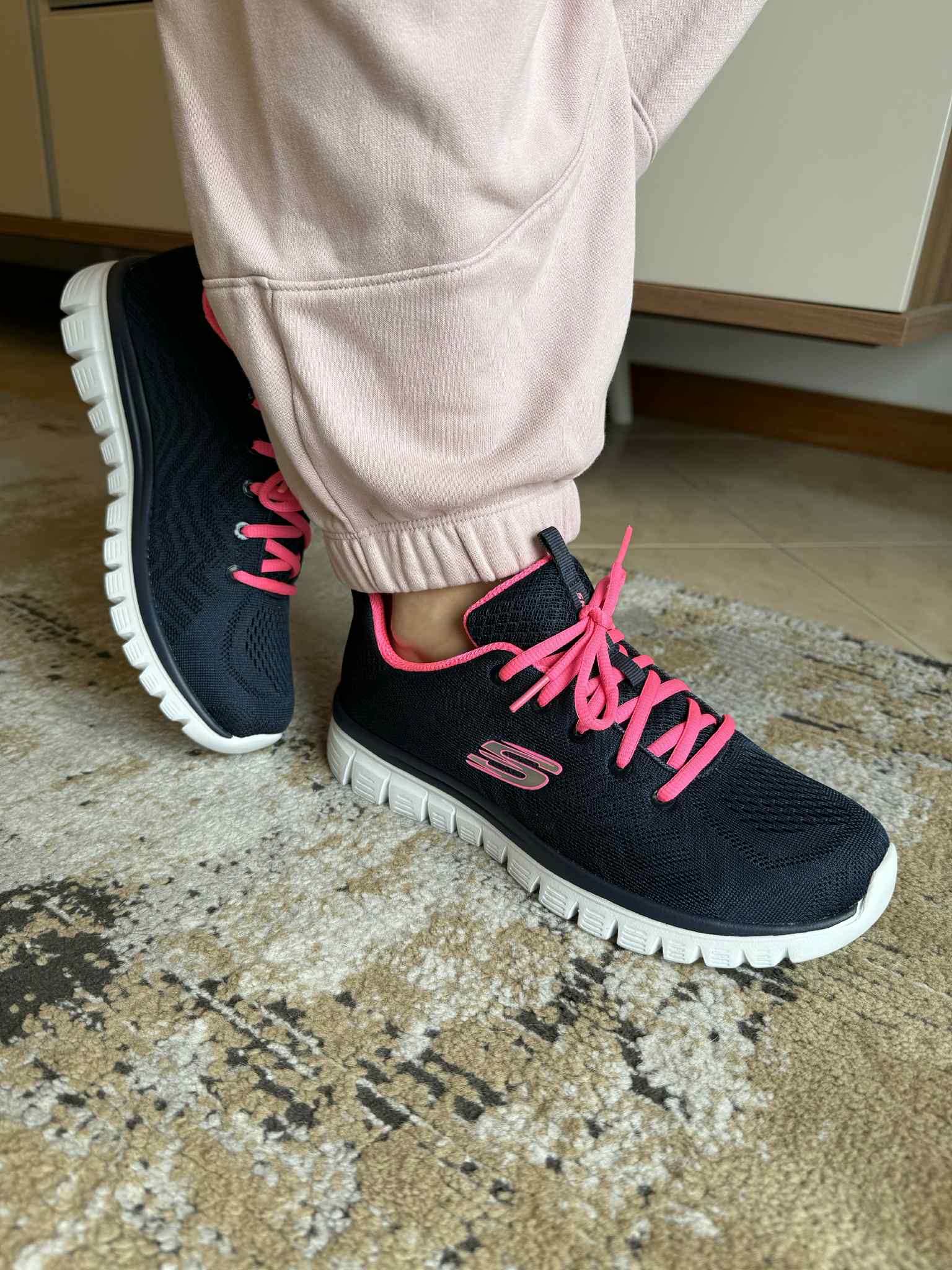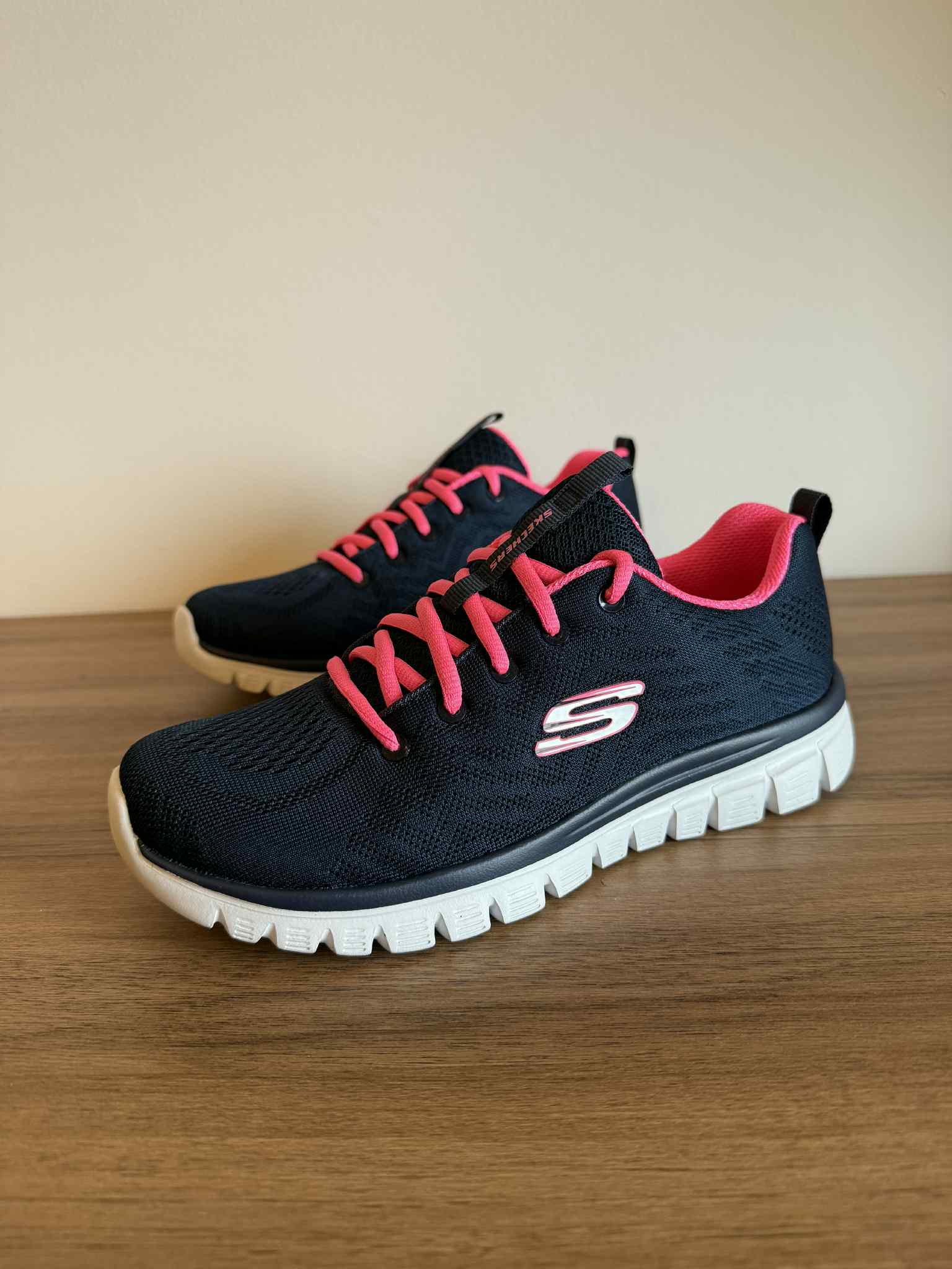 Faz uma transição fácil do ginásio para conforto durante todo o dia com os SKECHERS Graceful – Get Connected. Parte superior em tecido desportivo Skech Knit Mesh de peça única numas sapatilhas com atacadores com detalhes de costura e revestimento. Palmilha Memory Foam.
