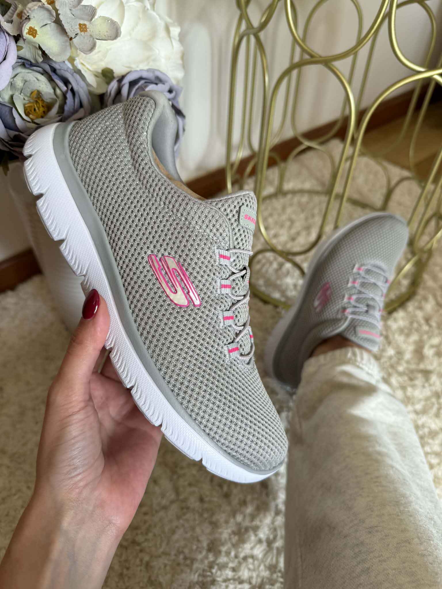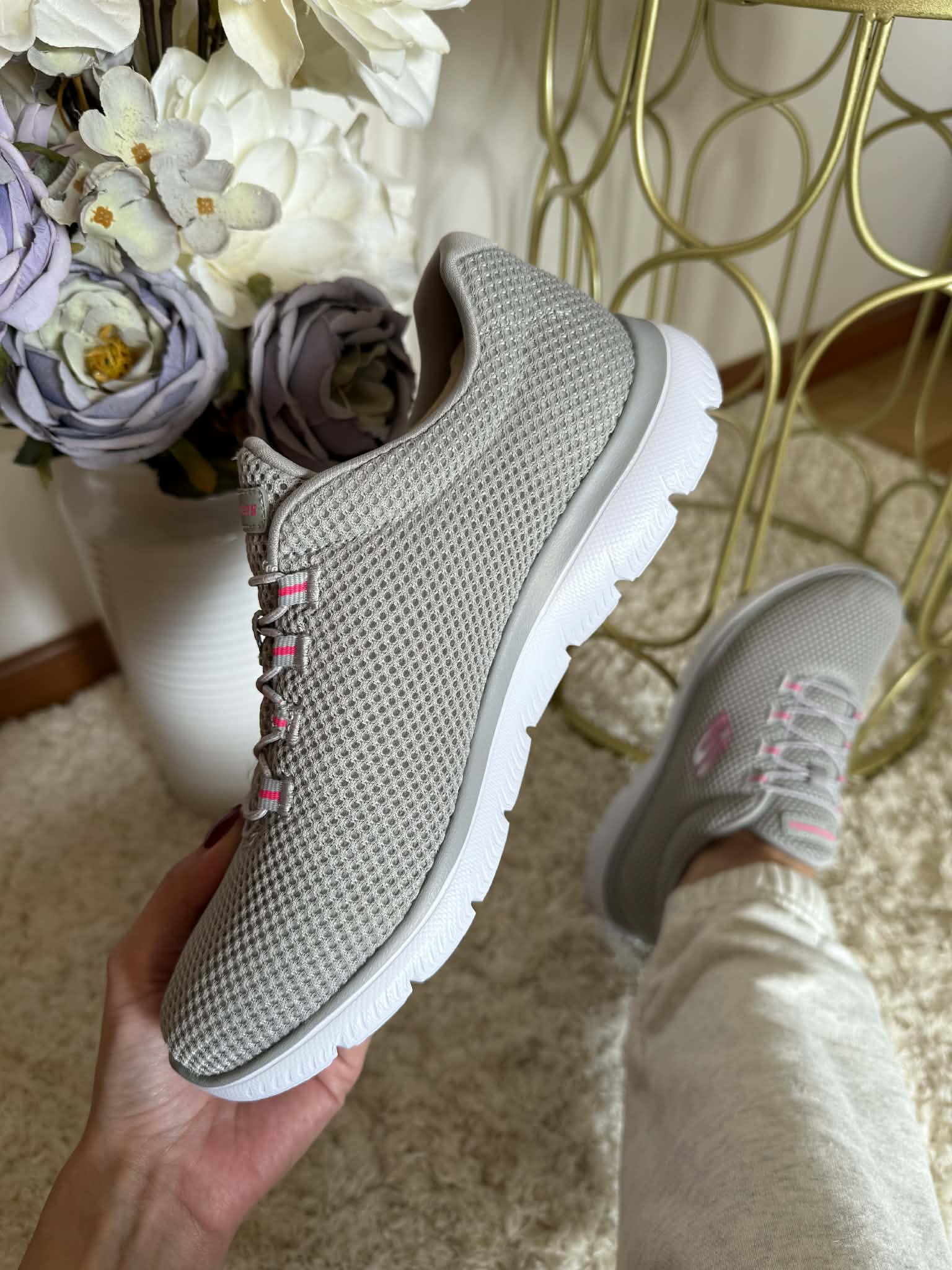 Caminhe com conforto com a sapatilha Skechers Summits. Este tênis sem apertar apresenta uma parte superior em malha respirável uma frente com elástico e palmilha acolchoada Memory Foam.